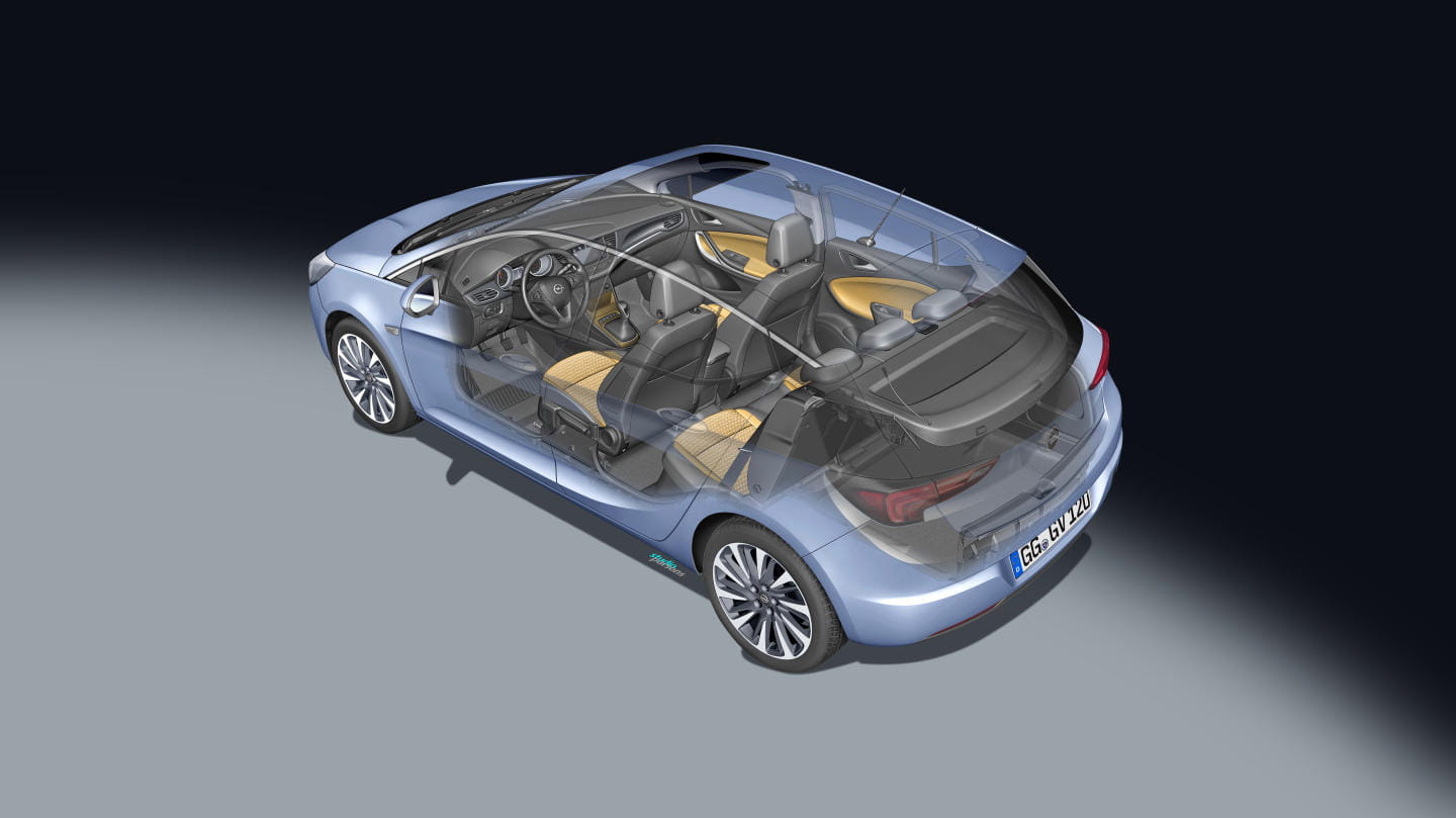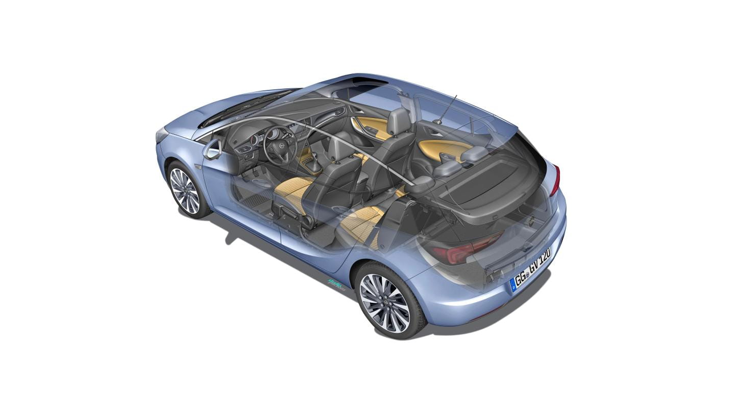 La nueva generación del Opel Astra se basa en una nueva arquitectura sobre la que se ha acuñado un diseño de líneas fluidas en la que destaca el marcado nervio lateral, la horizontalidad del conjunto de ópticas/parrilla de su frontal y las ópticas traseras así como el acabado “flotante” de su pilar posterior.