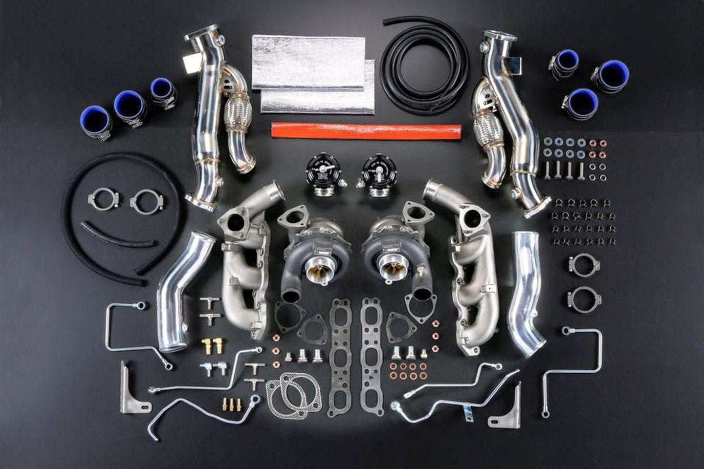 Fijaos en los colectores del motor, completamente cromados. Había visto motores cromados en alguna preparación estadounidense, pero el trabajo de Kuhl Racing está a un nivel completamente diferente. Por el amor de Dios, los turbocompresores tienen turbinas doradas. Mención aparte merece el sistema de escape de titanio, con una intrincadísima red de tubos que desembocan en tres salidas centrales bajo el paragolpes trasero. Una suspensión de aire – de altura ajustable, lógicamente – pega el coche al suelo, casi literalmente.