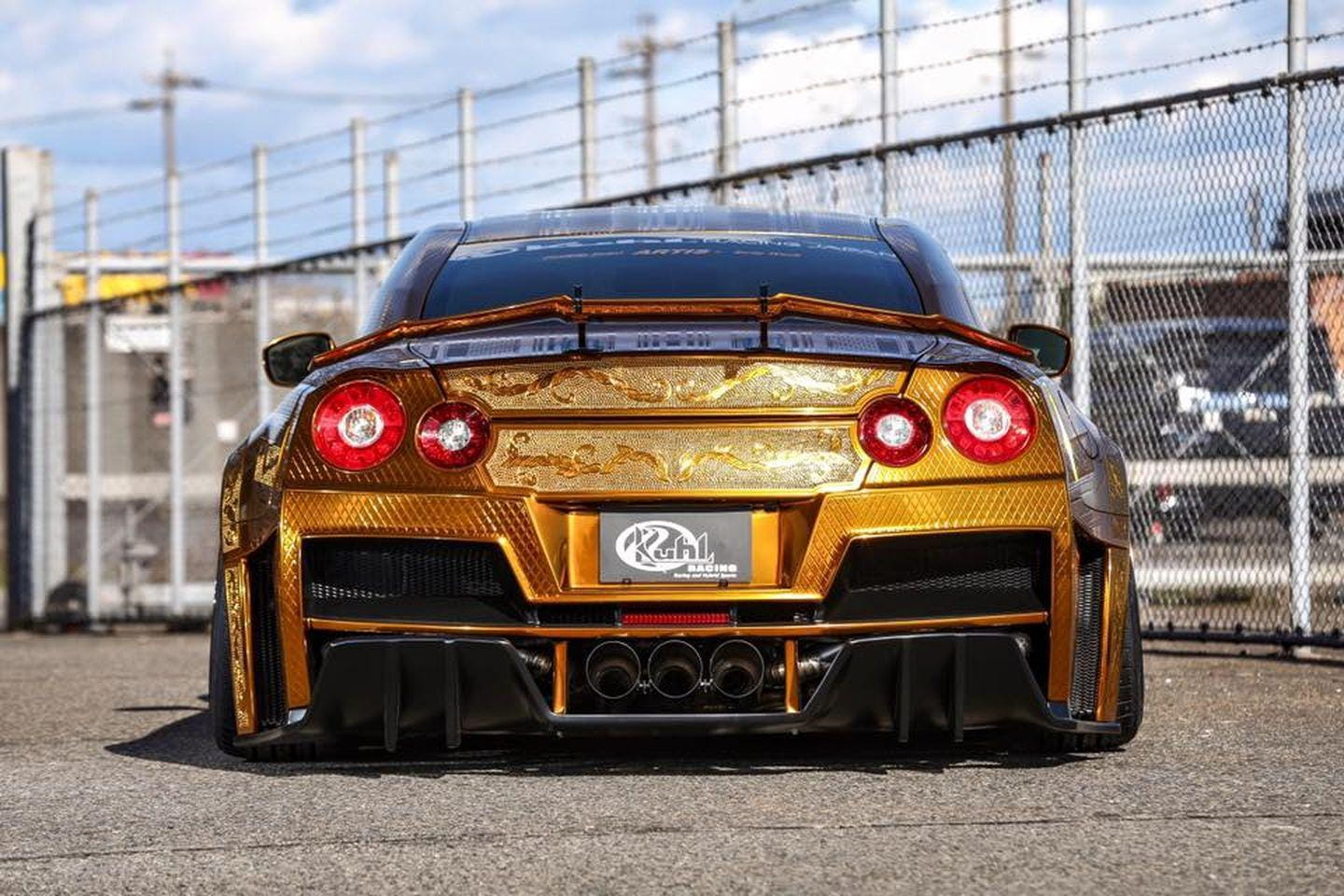El trabajo de pulir, cromar y dorar cada pieza – a base de un spray con oro en polvo, sí – ya es digno de mención por sí mismo, pero los grabados con técnicas tradicionales son algo que jamás había visto en una preparación. Podríamos pensar que el plano estético termina ahí, pero es que el preparador ha diseñado un kit de carrocería en el que ningún cabo queda suelto. Alerón, difusores, paragolpes nuevos… todos han sido retocados por la mano experta de estos japoneses. Las llantas de aleación sí son convencionales.