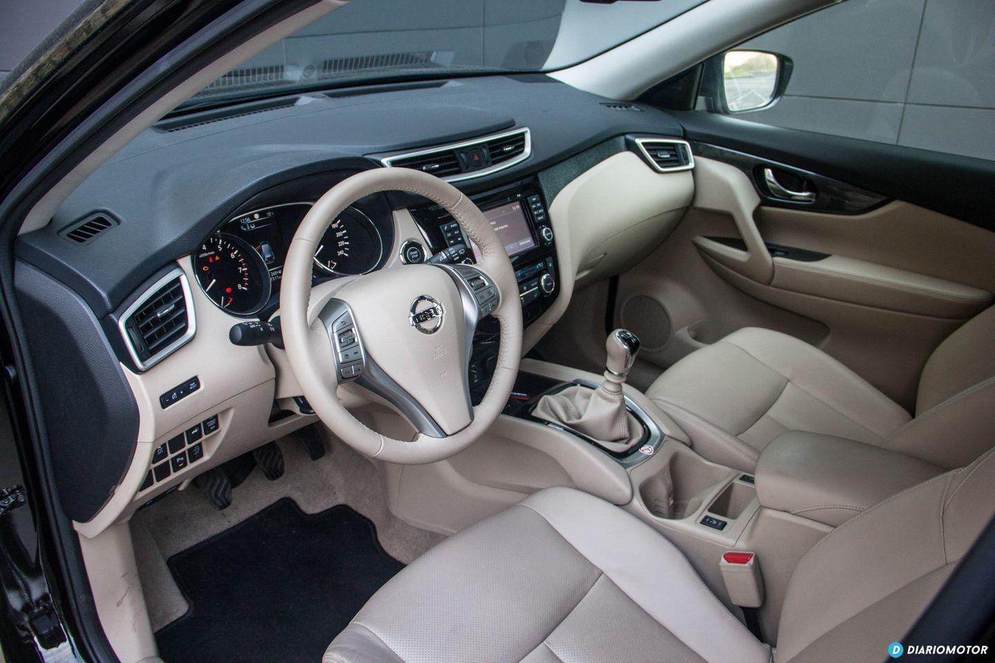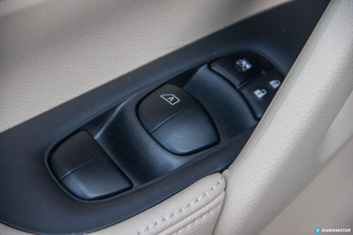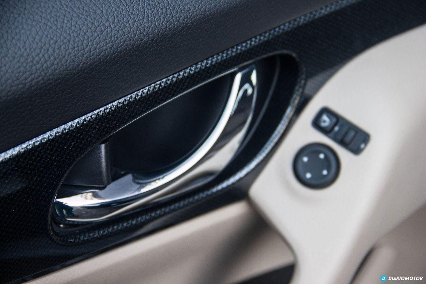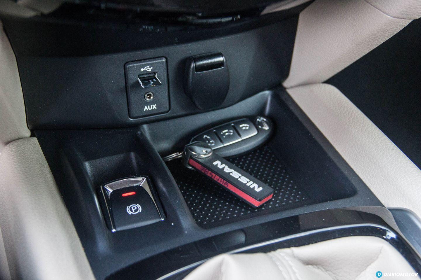 Con todo, no resulta ostentoso: sus proporciones son sensatas y no tiene ningún rasgo estilístico considerado excesivo. No hay lugar para florituras en el Nissan X-Trail, su perfil no nos llama la atención, y a excepción de unas ópticas LED transparente en la zaga, no hay motivos para emocionarse en demasía. Pasamos a su habitáculo y me reciben unos asientos de cuero beige junto a molduras de plástico del mismo color en el salpicadero. Es un color poco sufrido, aunque estéticamente forme una bonita estampa ante nuestros ojos.