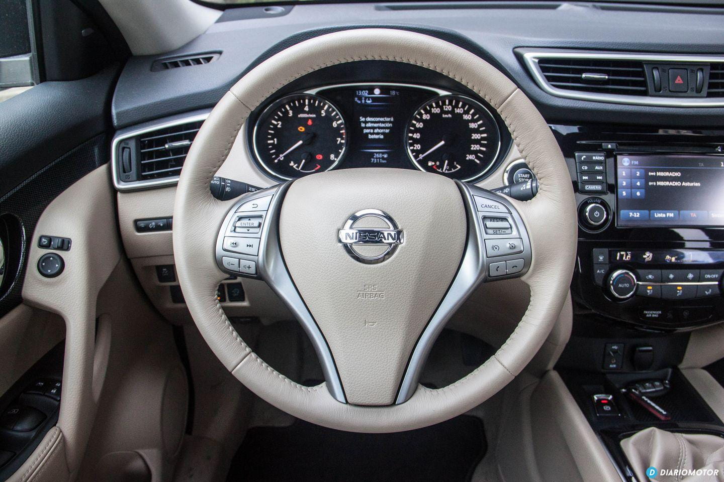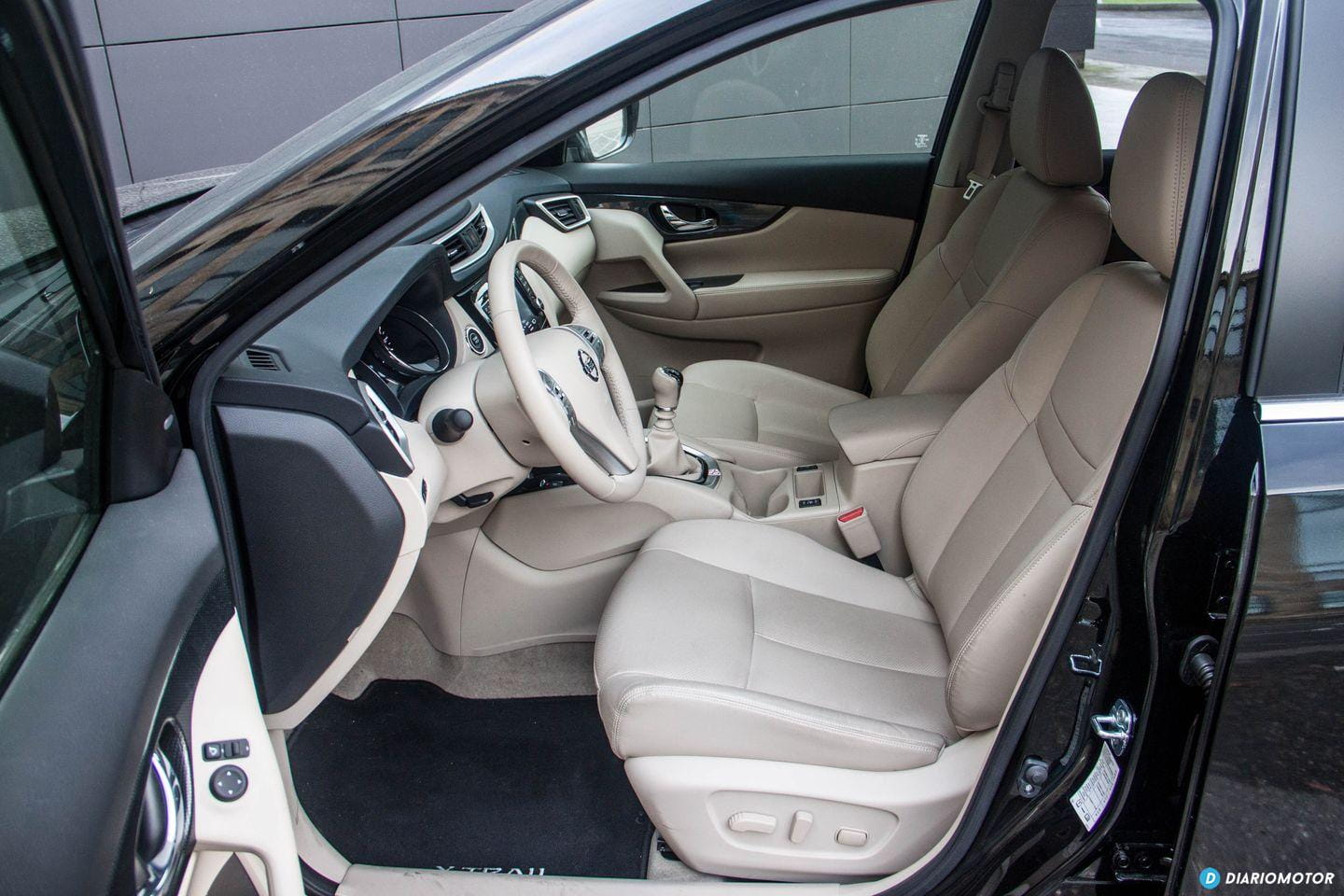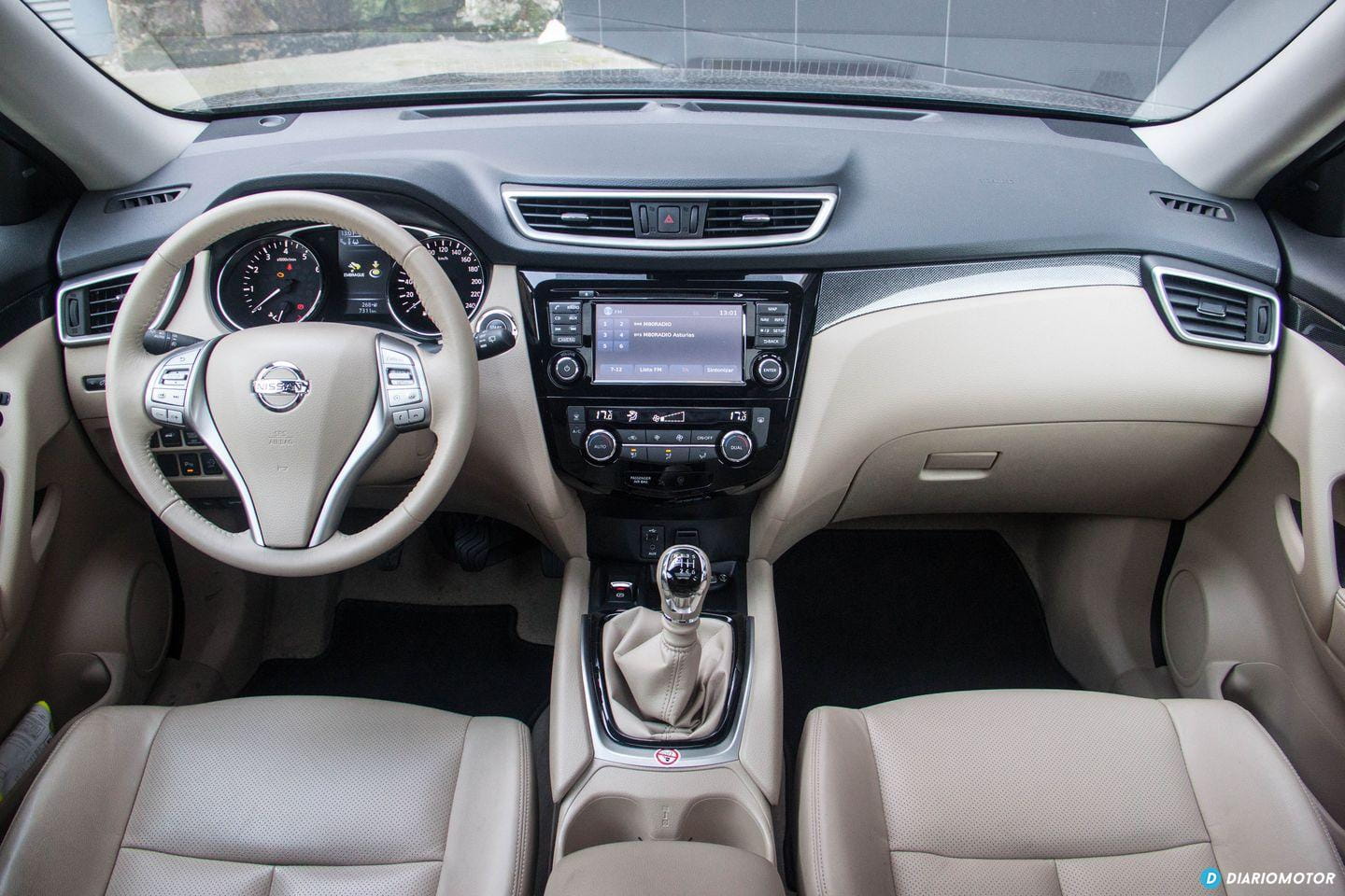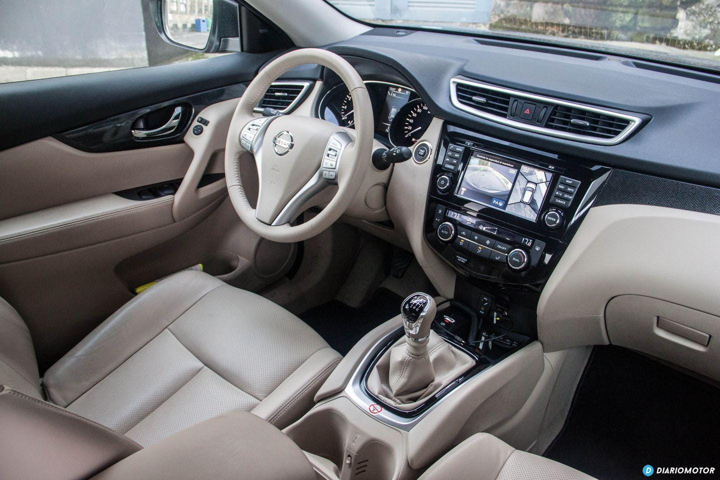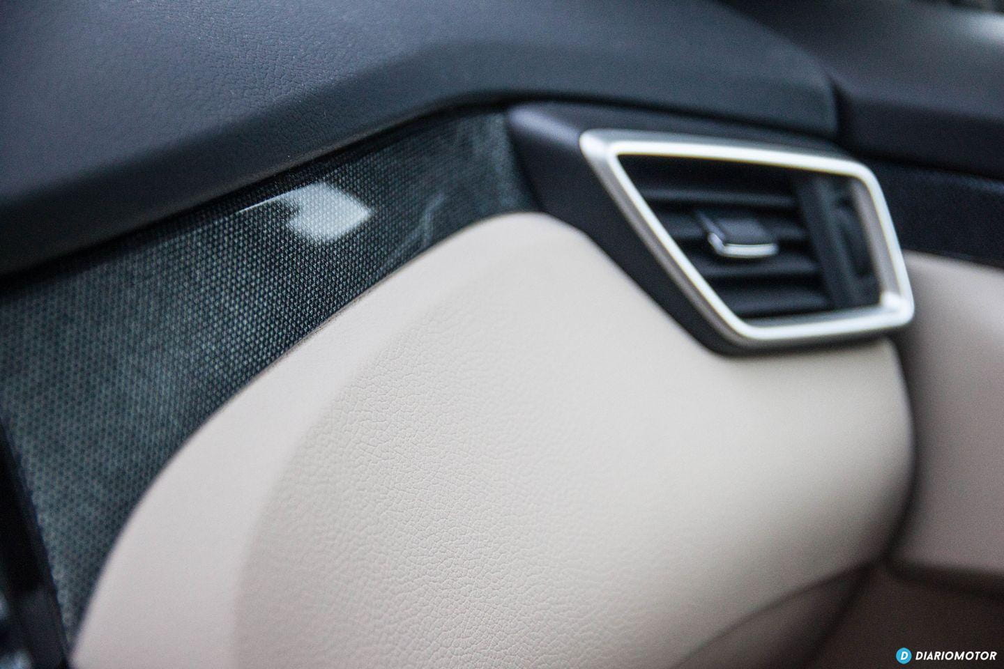 Con todo, no resulta ostentoso: sus proporciones son sensatas y no tiene ningún rasgo estilístico considerado excesivo. No hay lugar para florituras en el Nissan X-Trail, su perfil no nos llama la atención, y a excepción de unas ópticas LED transparente en la zaga, no hay motivos para emocionarse en demasía. Pasamos a su habitáculo y me reciben unos asientos de cuero beige junto a molduras de plástico del mismo color en el salpicadero. Es un color poco sufrido, aunque estéticamente forme una bonita estampa ante nuestros ojos.