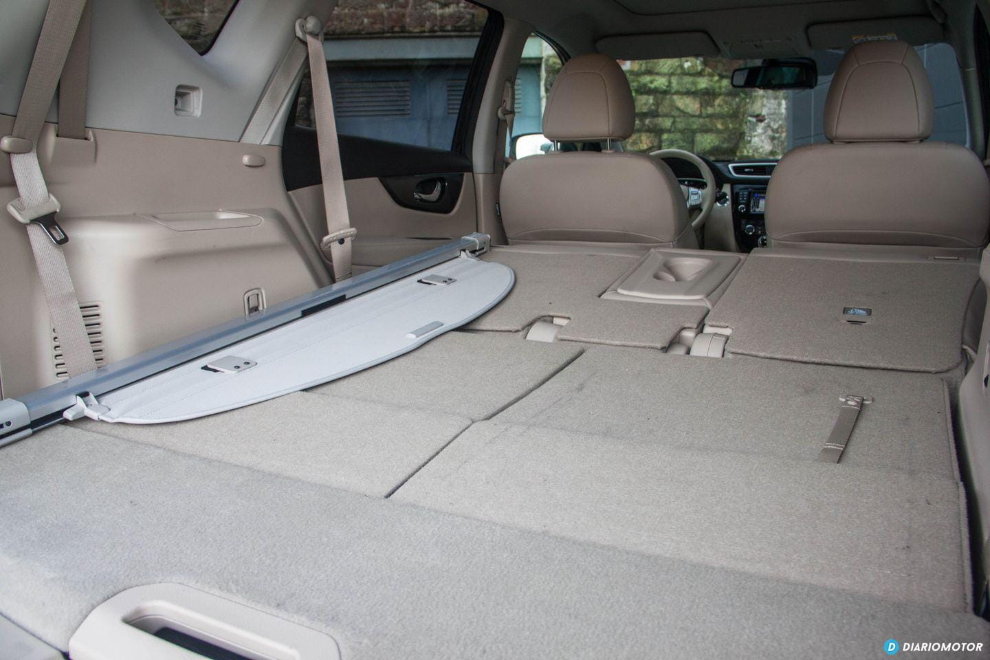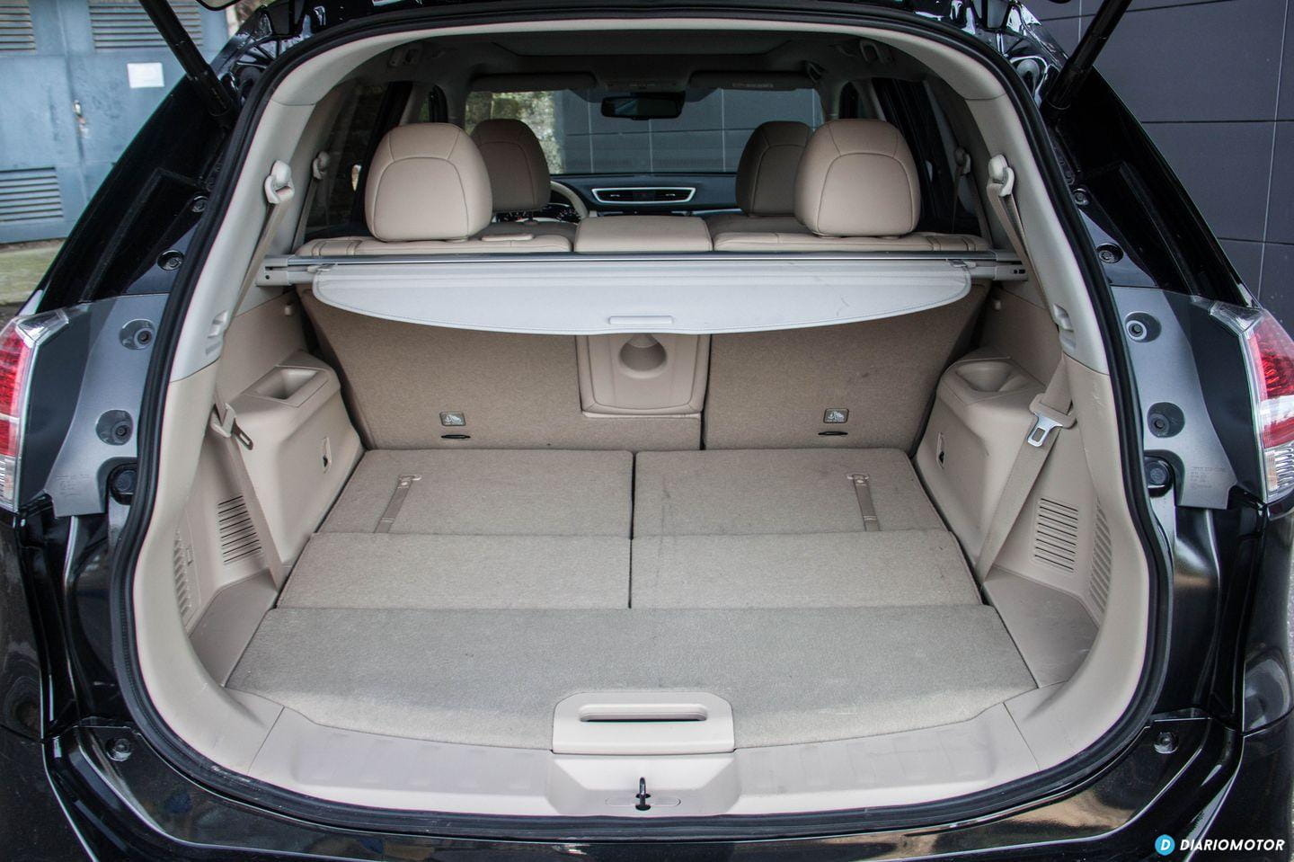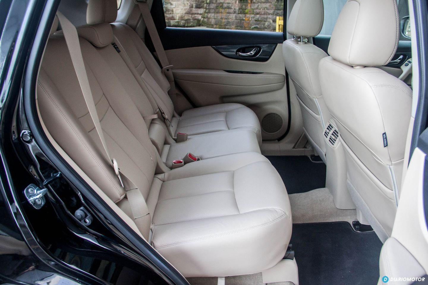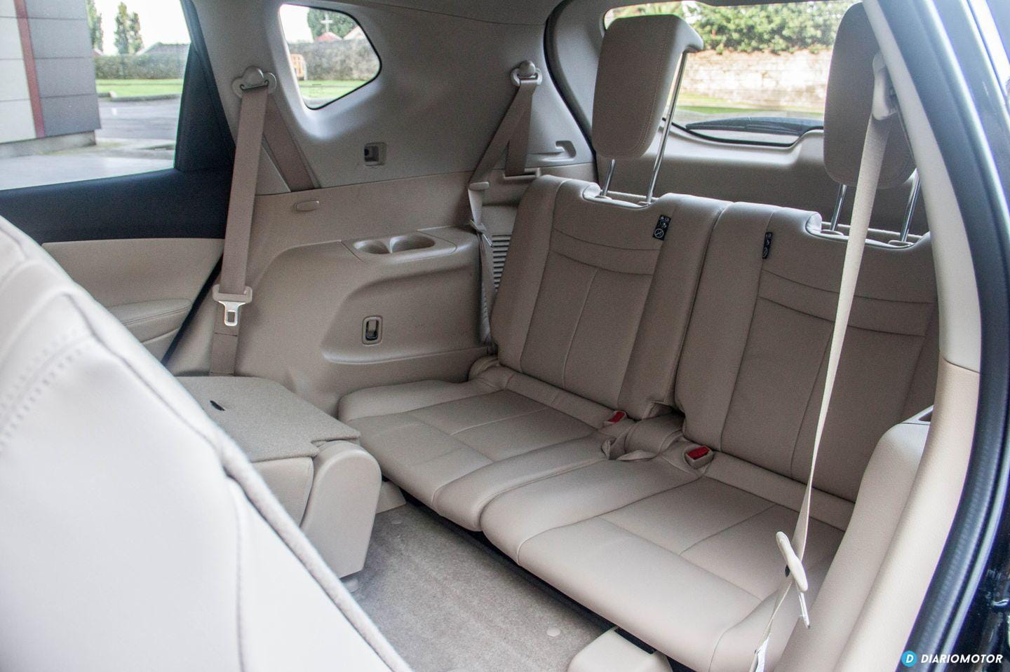 Los pasajeros del coche viajarán en primera clase en las plazas centrales. Hay mucho espacio disponible para las piernas, y el respaldo del asiento se puede inclinar ligeramente si queremos dormir durante el viaje. Las dos plazas extra – con un sobrecoste de 800 euros con respecto a un X-Trail de cinco plazas – están ocultas bajo el piso del maletero, con el inconveniente de ocupar parte del espacio de carga disponible. El maletero disminuye su tamaño de 550 litros en el cinco plazas a 445 litros en el siete plazas.