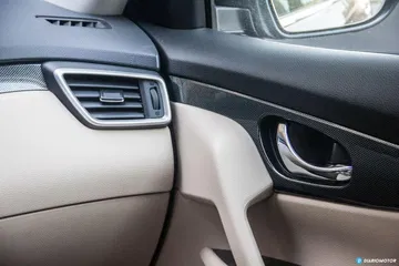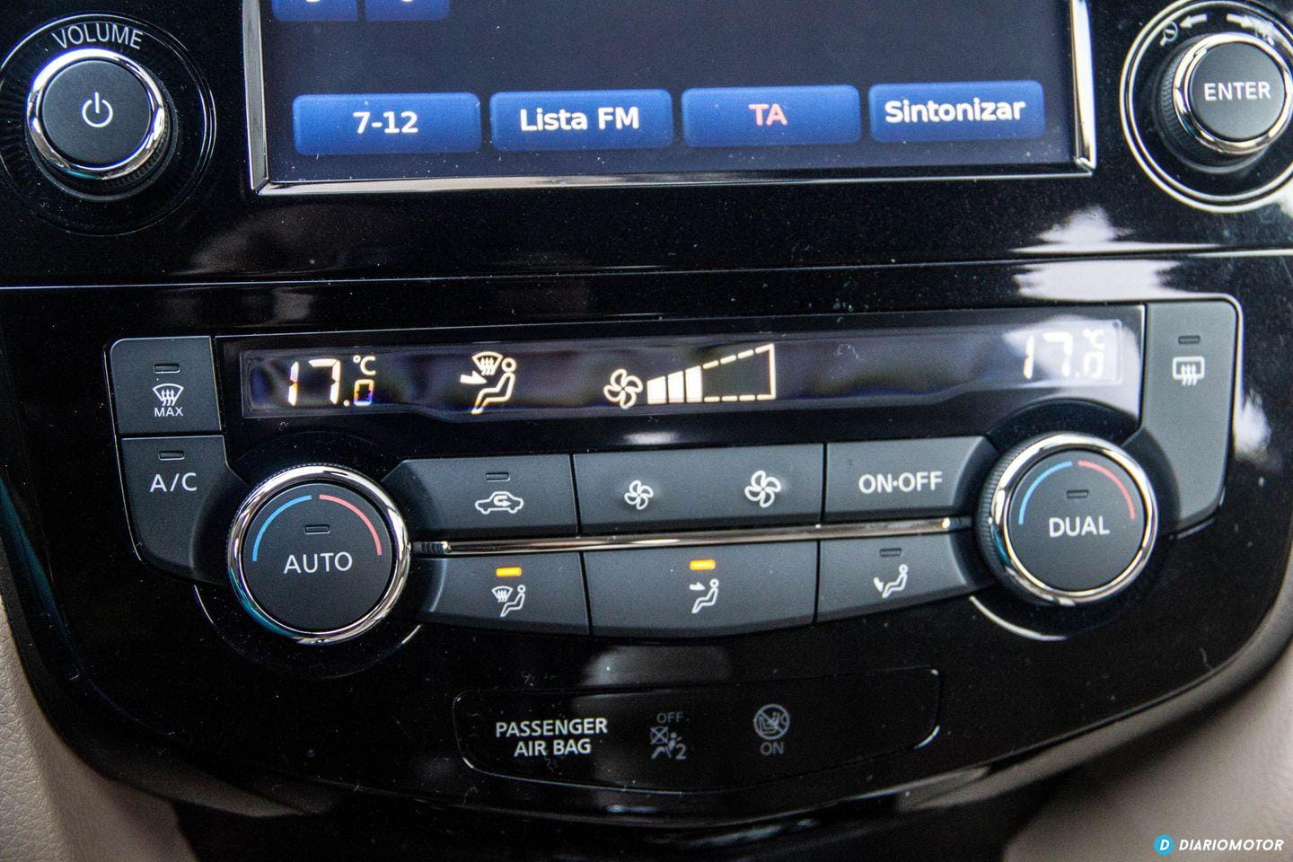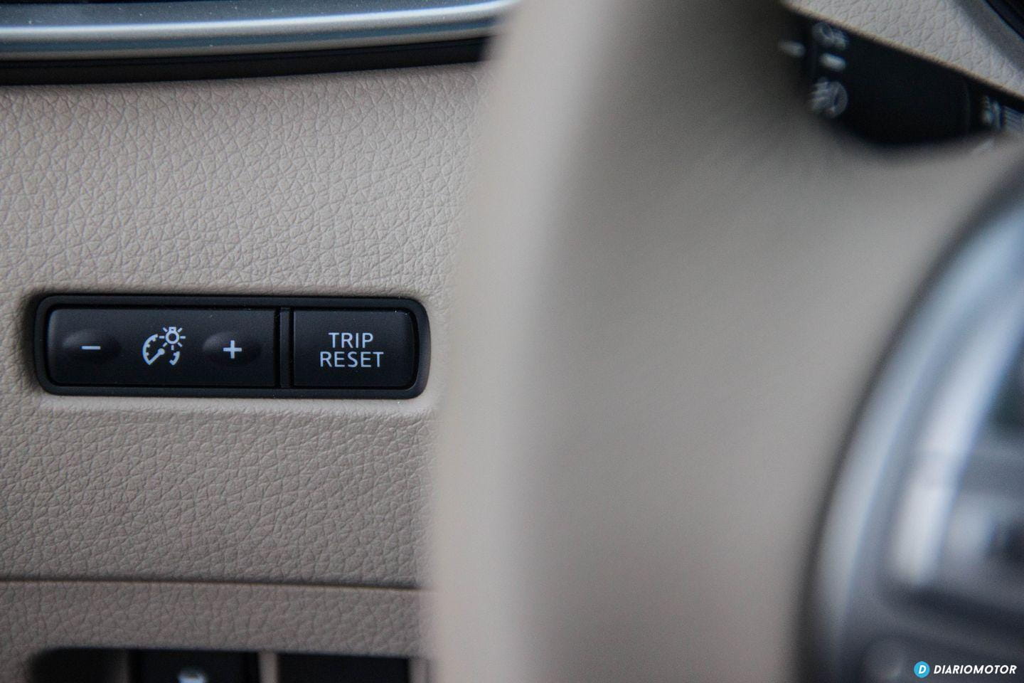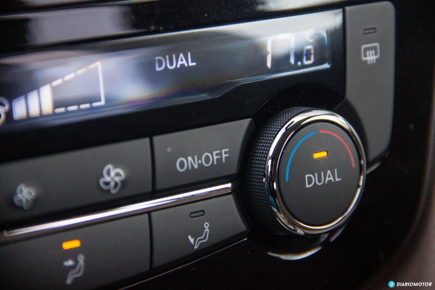 El espacio disponible en el interior del X-Trail es muy considerable. Las cotas de los asientos delanteros – muy cómodos en viajes largos – son excelentes, así como la cantidad de ajustes disponibles. Todos los controles quedan muy a mano y son sencillos de utilizar, a excepción del botón de apertura del maletero y los de activación de algunas asistencias, que quedan bajos y parcialmente ocultos a la vista, a la izquierda del volante. Es posible confundir el tirador de la apertura del capó con el del depósito de combustible.