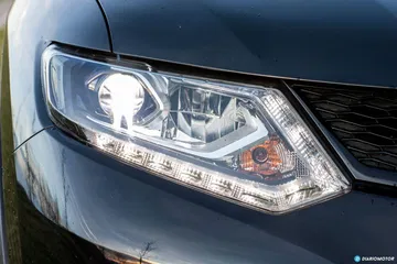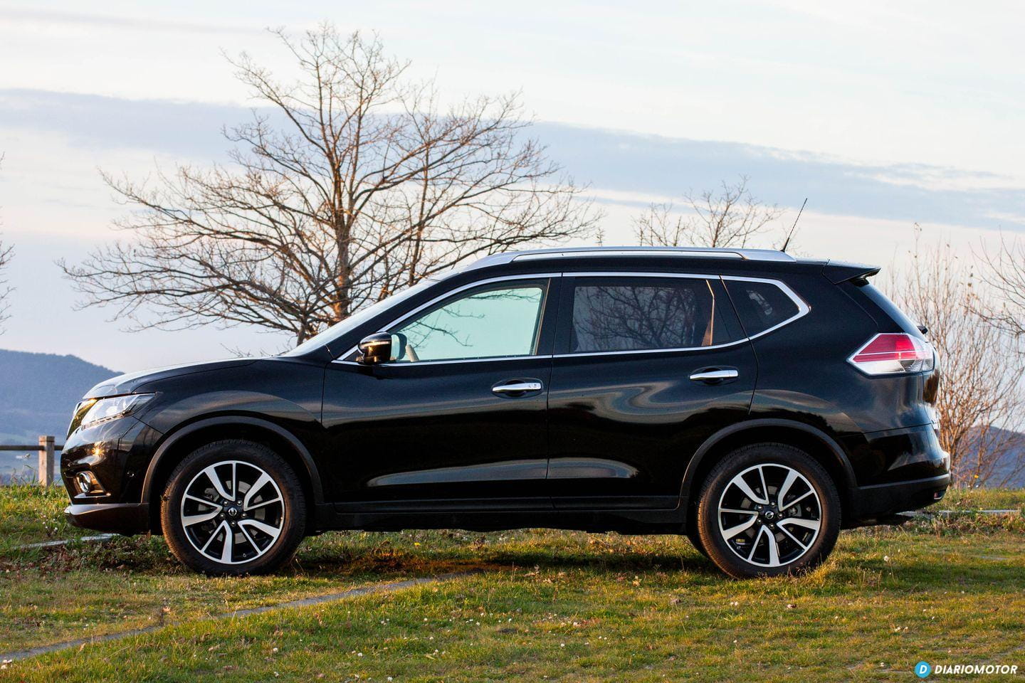 El Nissan X-Trail fue renovado al completo en 2014. Una nueva generación fue lanzada al mercado, reemplazo de una longeva generación que ya languidecía en ventas. El X-Trail es un verdadero producto global, que en mercados como el estadounidense es conocido como Rogue. Es un SUV con buena presencia, y en color negro y calzado con llantas de 19 pulgadas se deja notar entre el tráfico. En su frontal porta orgulloso la calandra típica de Nissan, flanqueada con dos ópticas con LEDs de iluminación diurna.