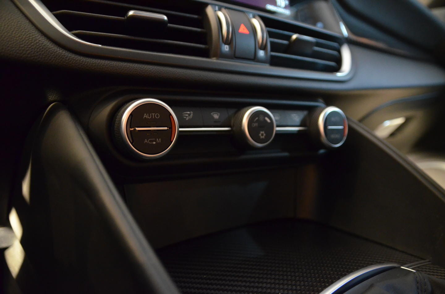 En líneas generales el salpicadero del Giulia se presenta con ese aire sencillo que mentaba al hablar de su volante, algo que se palpa en las tres ruletas del puente central, en una consola en la que sólo se han situado los botones de la climatización.
