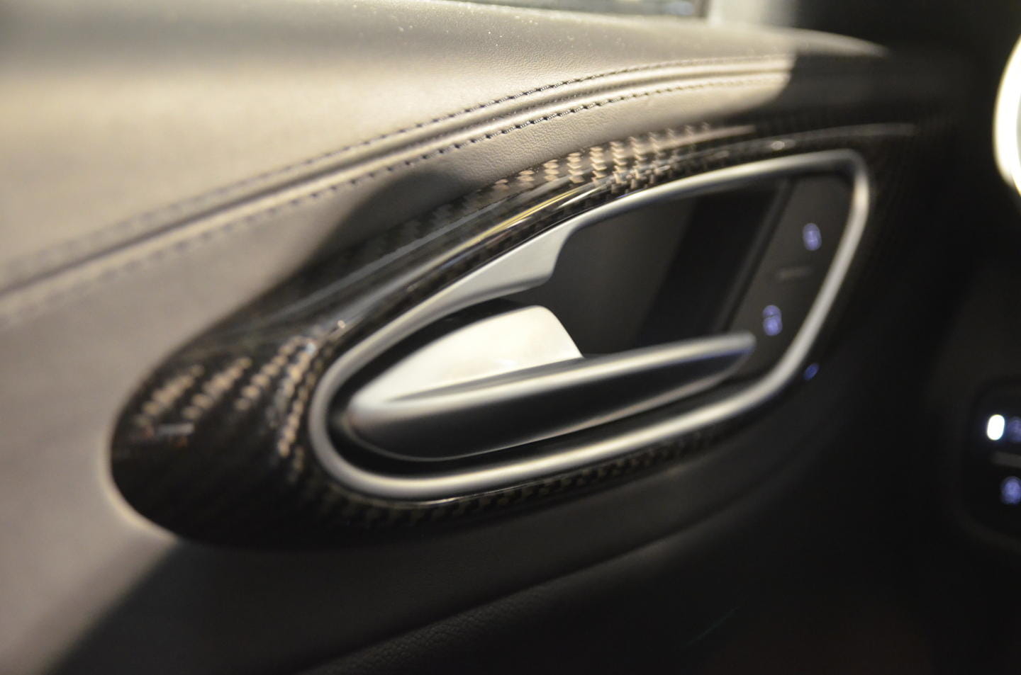 Me gusta su pomo del cambio, en aluminio, clásico. Me gusta la fibra de carbono que se reparte por el salpicadero, por el puente central. Su instrumentación es clara, dos esferas también clásicas y un display digital de generoso tamaño en el centro. Bien.