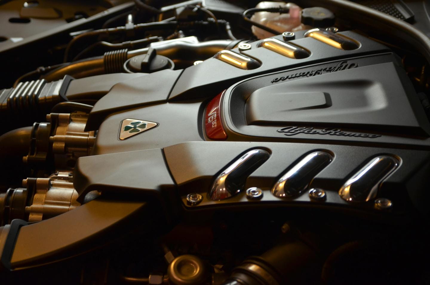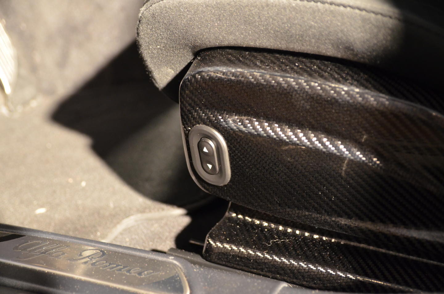 Alzamos su capó. No pesa nada. Bajo la capa de pintura, por la parte inferior, se vislumbra la fibra de carbono. Alfa romeo ha recurrido a este material para confeccionar su capó, también el techo y al abrir las puertas para adentrarnos en su habitáculo, más adelante, nos toparemos con una ligereza inusual fruto de la presencia del aluminio.