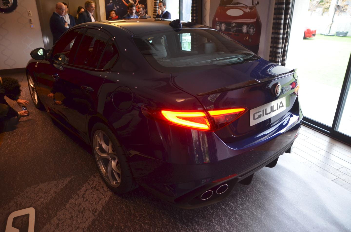 Músculo, mucho músculo. Un pequeño grupo de compñaeros se arremolina ya a su alrededor. A lo largo de la mañana van a venir algunos posibles clientes de esta vitaminada berlina, clientes de Alfa Romeo que ya tienen en su garaje algún Quadrifoglio Verde, que tienen un Alfa romeo 4C.