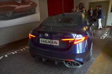 Un compañero tiene que grabar un vídeo, abandonamos por unos minutos la sala, esperamos en un patio donde la firma ha traído para la ocasión a un Alfa Romeo Giulietta QV, a un Alfa Romeo 4C Spider. Me encanta el 4C, más ahora que lo podemos descapotar. Su línea, la melodía mecánica que llega al habitáculo, lo que representa, como además de exclusivo es excluyente… pero volvamos al Giulia.