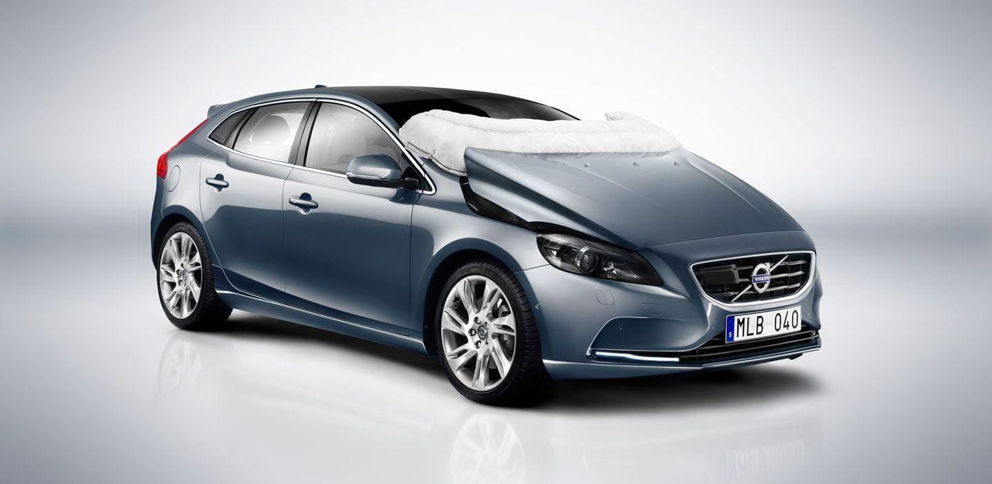 Hasta ahora, el único precedente de airbags exteriores es el del Volvo. Sólo se ha montado en el Volvo V40, y está diseñado para proteger a los peatones en atropellos a menos de 50 km/h. El capó se levanta unos centímetros y el airbag acolcha la zona de los limpiaparabrisas así como los dos pilares frontales, minimizando las heridas a los peatones. Es una tecnología cara y el Volvo V40 ha sido el único vehículo en equiparla hasta la fecha. Volvo ha preferido centrarse en tecnologías que prevengan el accidente, más que sus consecuencias.