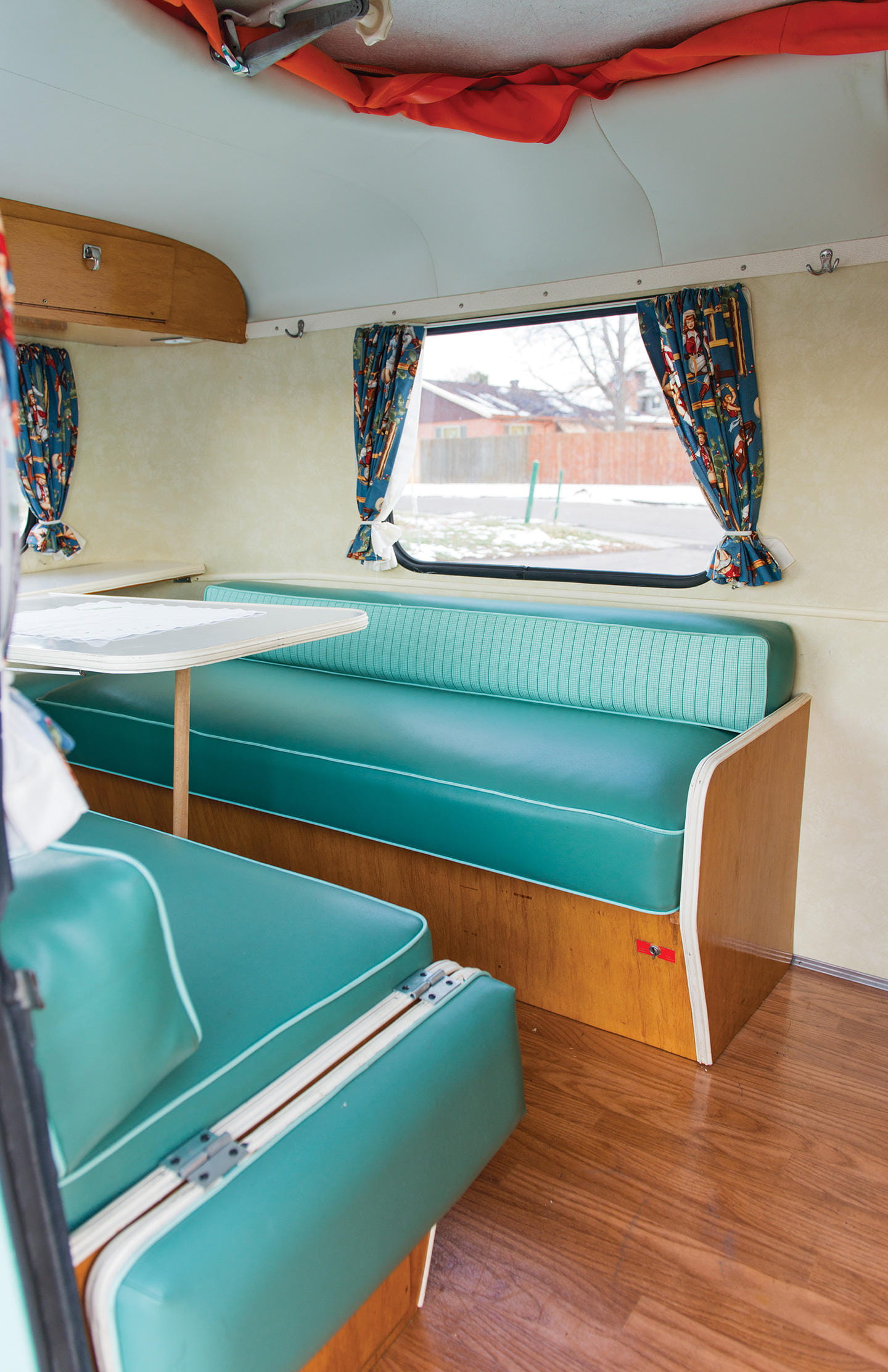 La Volkswagen T1 está equipada con todos los elementos necesarios para salir de viaje y acampar, con lo que esperaríamos en una autocaravana moderna, incluidos fuegos de propano, lavabo, mesa, y camas.