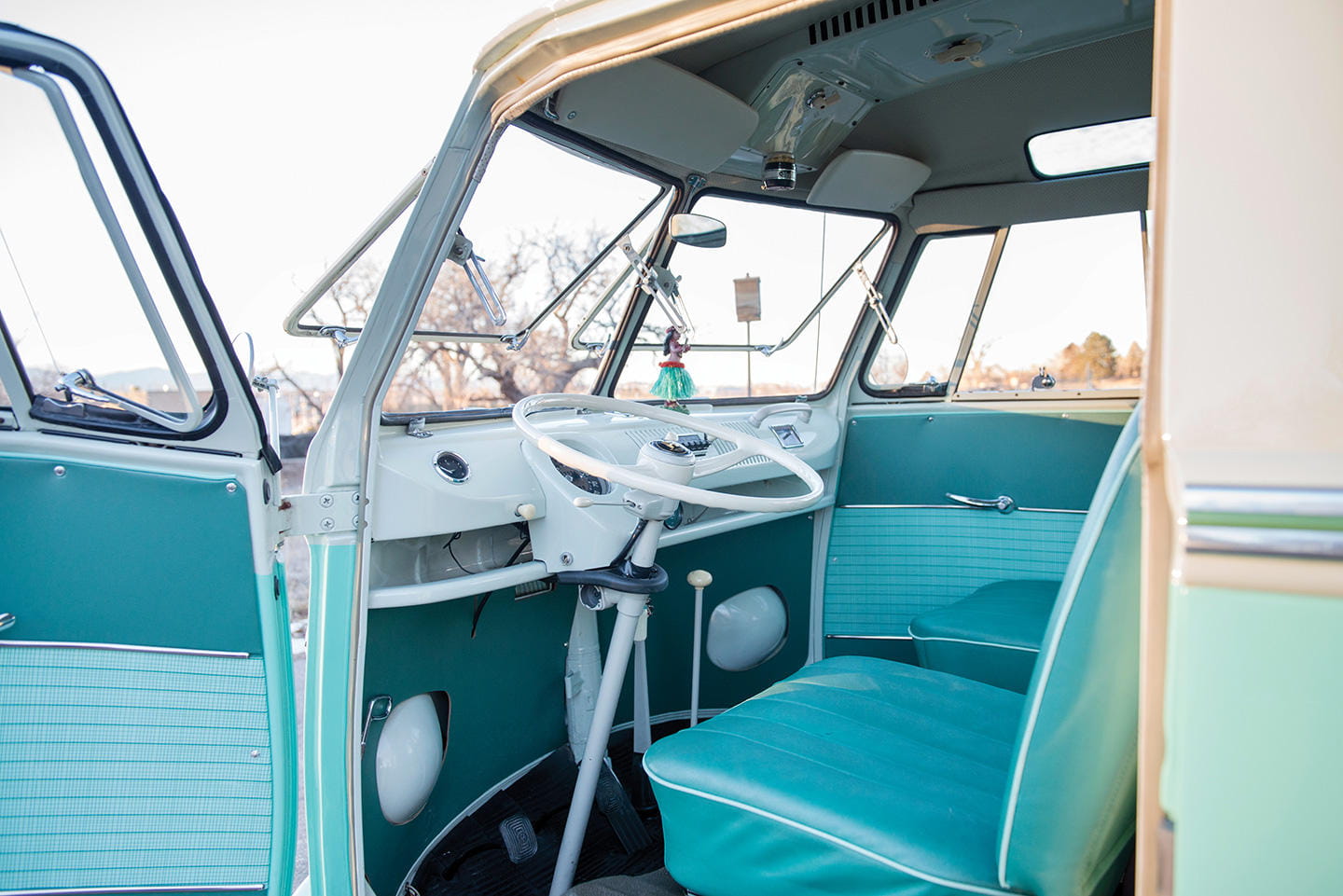 Esta furgoneta habría sido producida el 13 de marzo de 1963, según su certificado de autenticidad, y se habría matriculado originalmente en San Francisco, para llegar años más tarde a una escuela femenina de Kansas. En los noventa, un amante de los clásicos se encontró con ella, y con su remolque, y decidió proceder a su restauración. Tras su venta a un coleccionista, su último propietario, apenas habría recorrido 1.600 kilómetros en nueve años, generalmente en concentraciones y eventos de clásicos. Su motor, un modesto bloque de 1.585 cm3 con 50 CV de potencia.