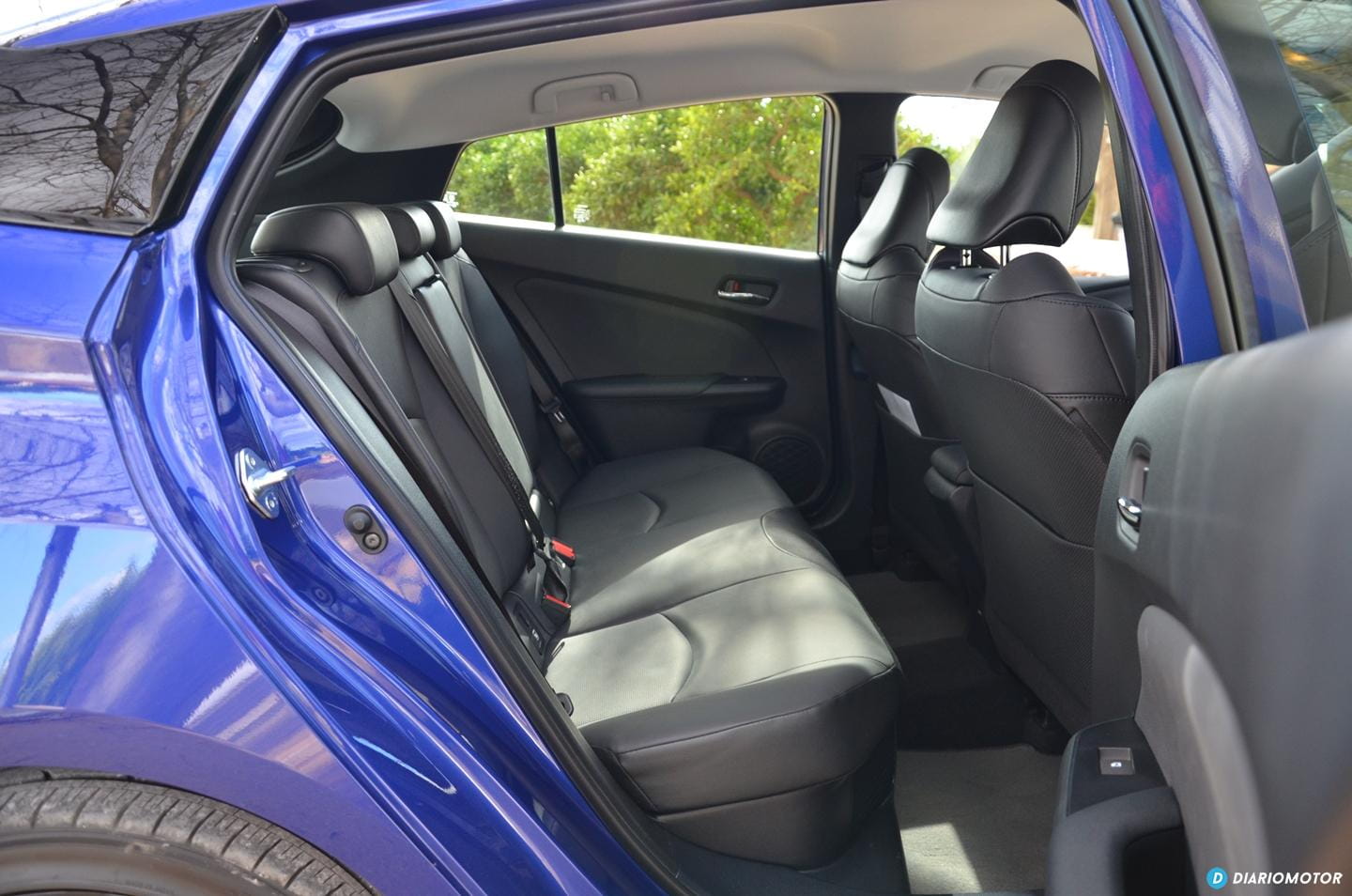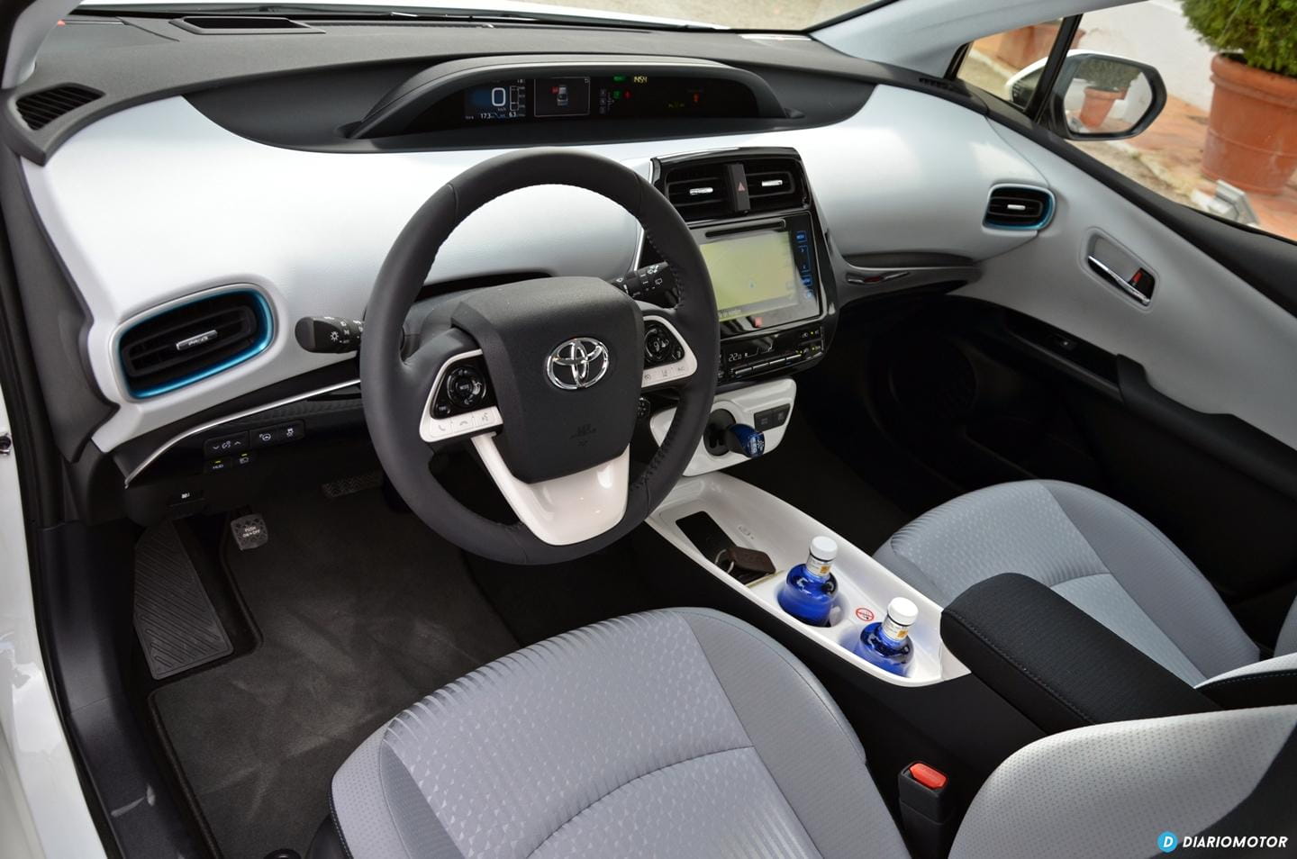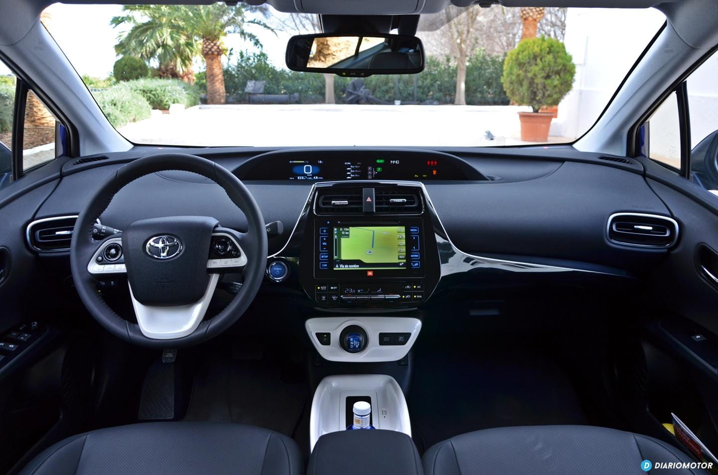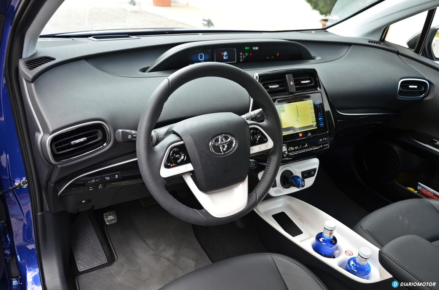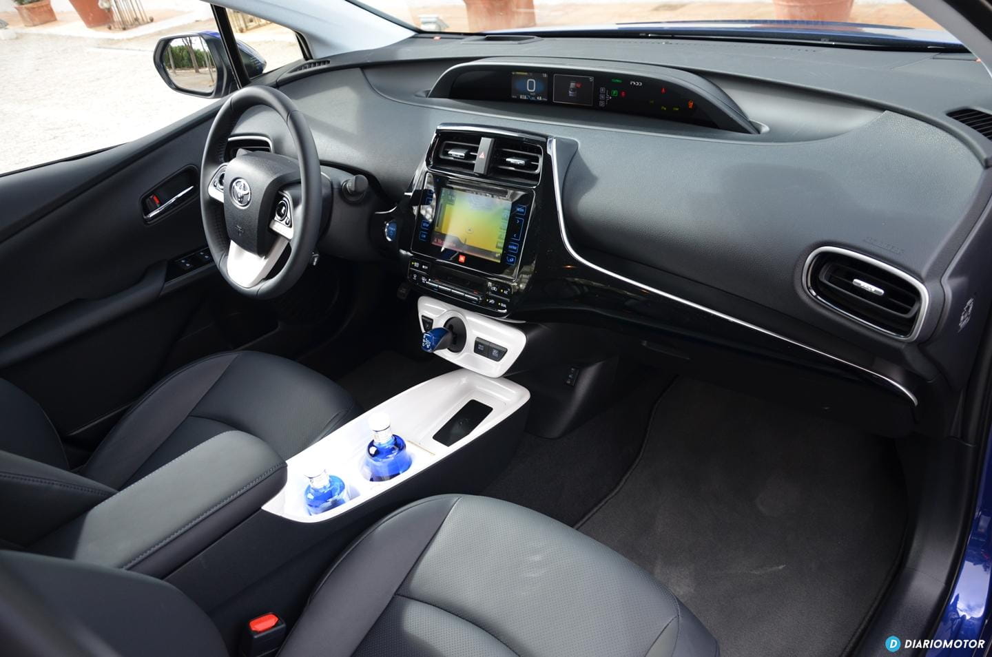 En el interior nos encontramos con un habitáculo futurista, aunque de proporciones, diseño y terminaciones mucho mejor resueltas que en sus anteriores generaciones. El Toyota Prius IV ha dado un salto cualitativo de envergadura en el habitáculo, confeccionando un interior bien resuelto en casi todos los puntos y creando un habitáculo más confortable y de mayor calidad. El estreno de la nueva plataforma TNGA GA-C es un punto crucial del nuevo interior del Toyota Prius, permitiendo que nuestro asiento esté casi 6cm más abajo y reubicando volante y pedales para alcanzar una posición de conducción más natural e intuitiva. Al mismo tiempo, el espacio disponible para pasajeros es amplio, con suficiente altura al techo para personas de 1,80 metros y un maletero con capacidad de 412 litros si lleva rueda de repuesto normal, 457 litros si lleva rueda de repuesto de emergencia o 502 litros si optamos por kit antipinchazos.