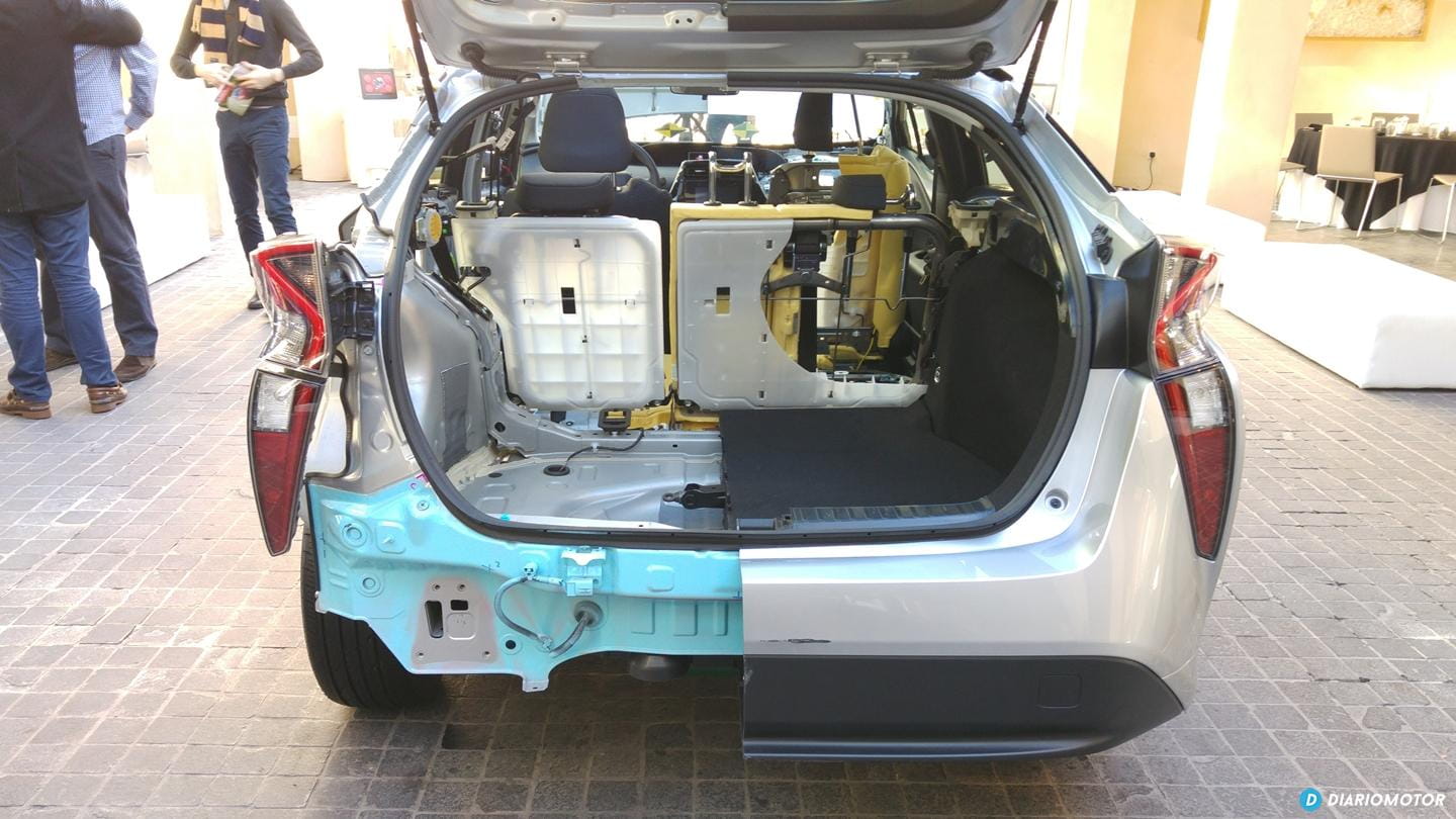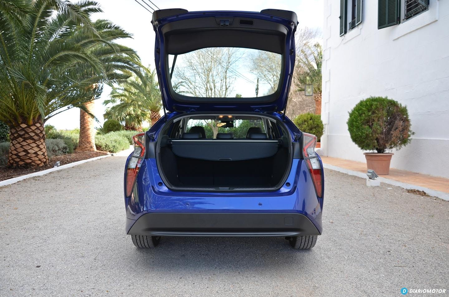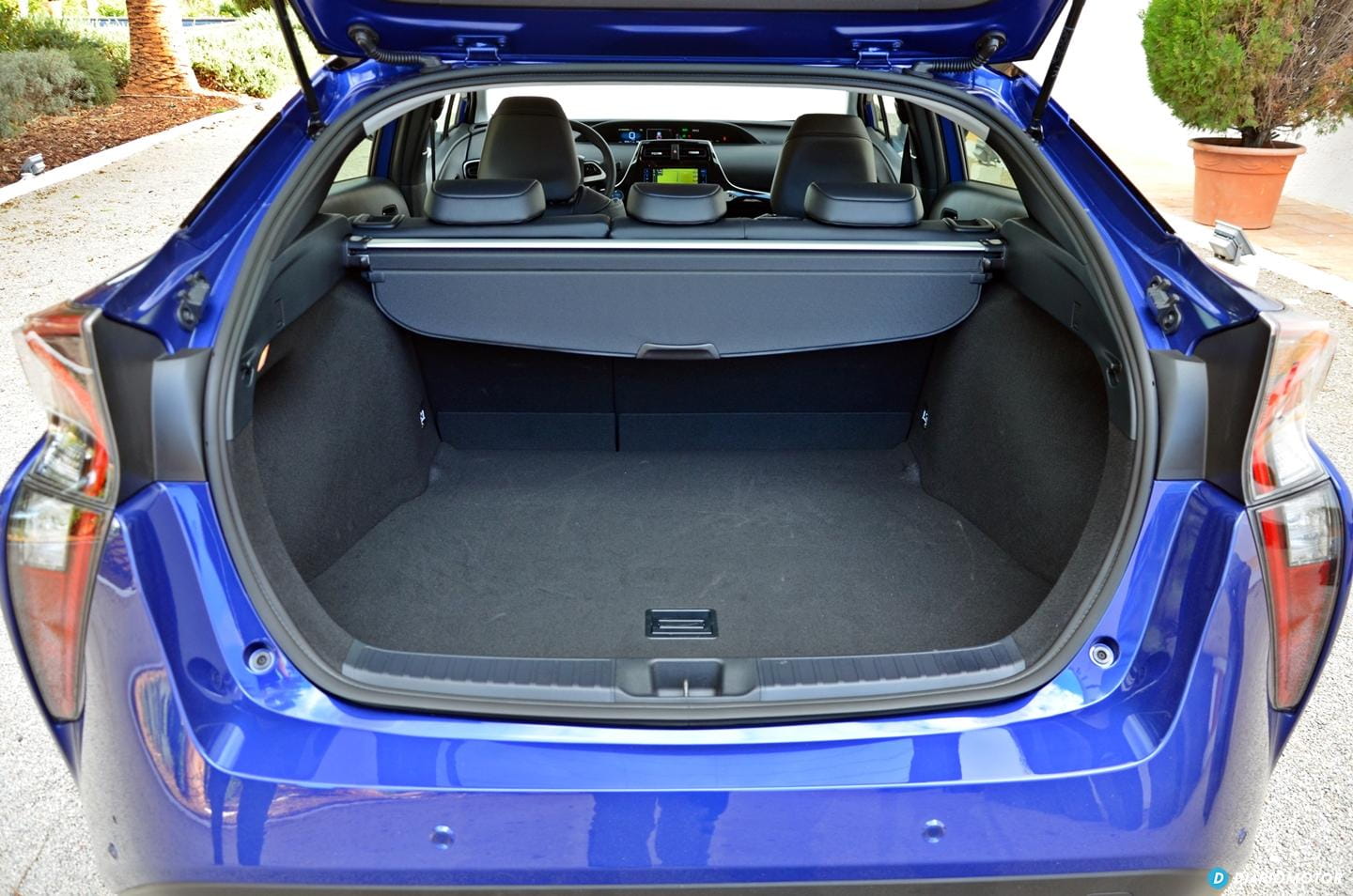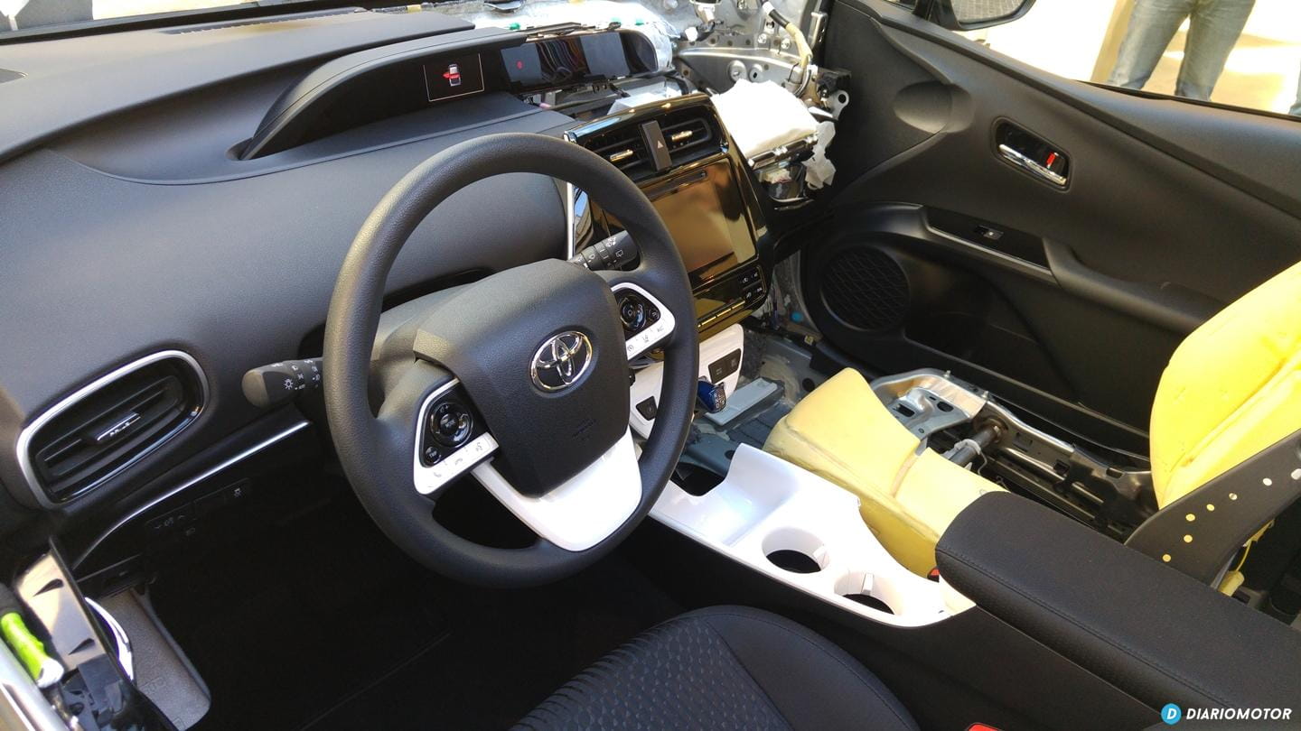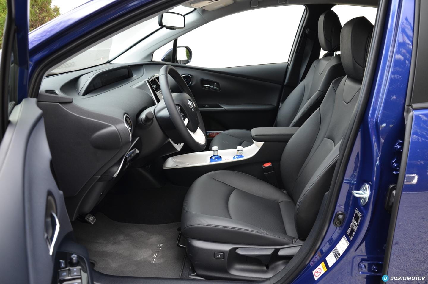 En el interior nos encontramos con un habitáculo futurista, aunque de proporciones, diseño y terminaciones mucho mejor resueltas que en sus anteriores generaciones. El Toyota Prius IV ha dado un salto cualitativo de envergadura en el habitáculo, confeccionando un interior bien resuelto en casi todos los puntos y creando un habitáculo más confortable y de mayor calidad. El estreno de la nueva plataforma TNGA GA-C es un punto crucial del nuevo interior del Toyota Prius, permitiendo que nuestro asiento esté casi 6cm más abajo y reubicando volante y pedales para alcanzar una posición de conducción más natural e intuitiva. Al mismo tiempo, el espacio disponible para pasajeros es amplio, con suficiente altura al techo para personas de 1,80 metros y un maletero con capacidad de 412 litros si lleva rueda de repuesto normal, 457 litros si lleva rueda de repuesto de emergencia o 502 litros si optamos por kit antipinchazos.