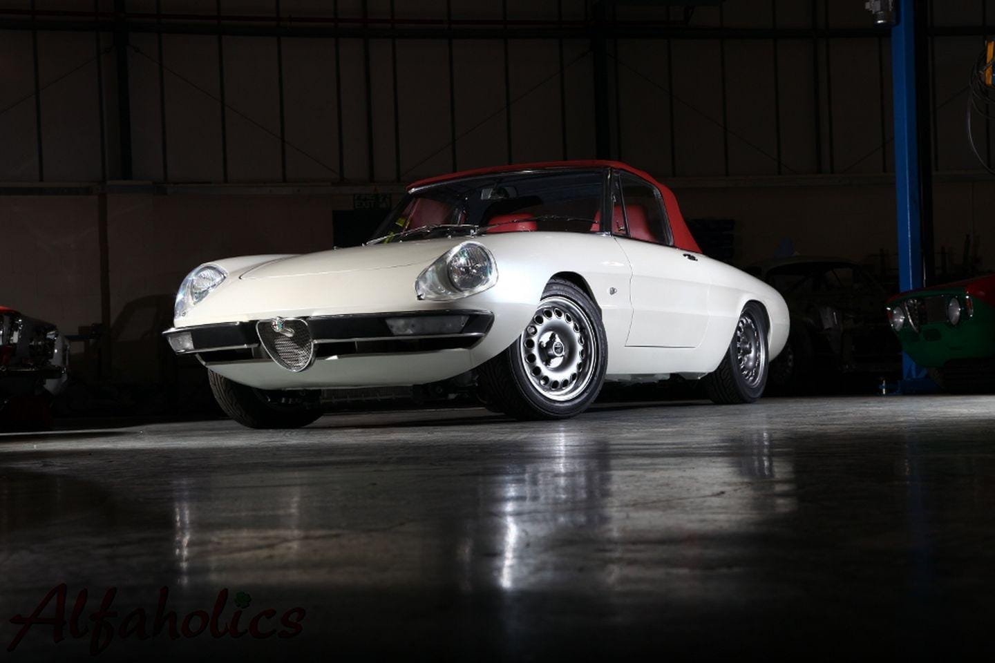 Todo comenzó con un Alfa Romeo Spider 2000 Veloce. Una unidad a medio restaurar fue la base para crear un Spider concebido para un uso intenso en circuito. Aunque los Alfa Romeo Giulia GTA suelen ser una base más adecuada, muchos propietarios de Spider son asiduos a trackdays. El trabajo comenzó en el chasis, que fue reforzado con nuevas soldaduras. También se instalaron barras de refuerzo en la parte inferior del chasis. Tras ser repintado en un color del Alfa Romeo 147, comenzó la magia de Alfaholics. Una magia en la que menos es más.