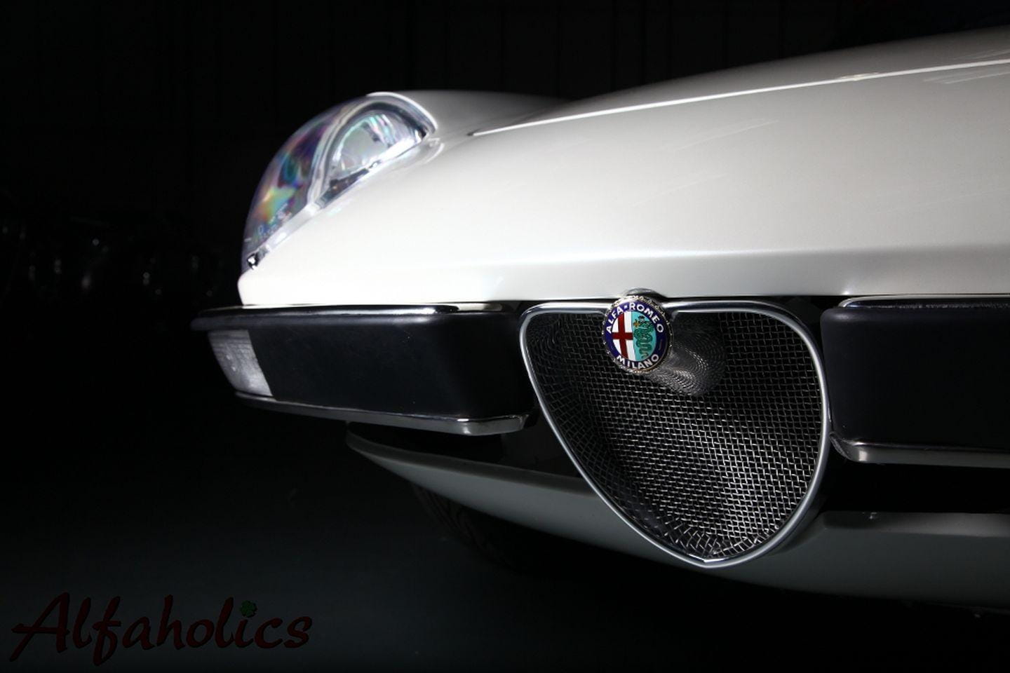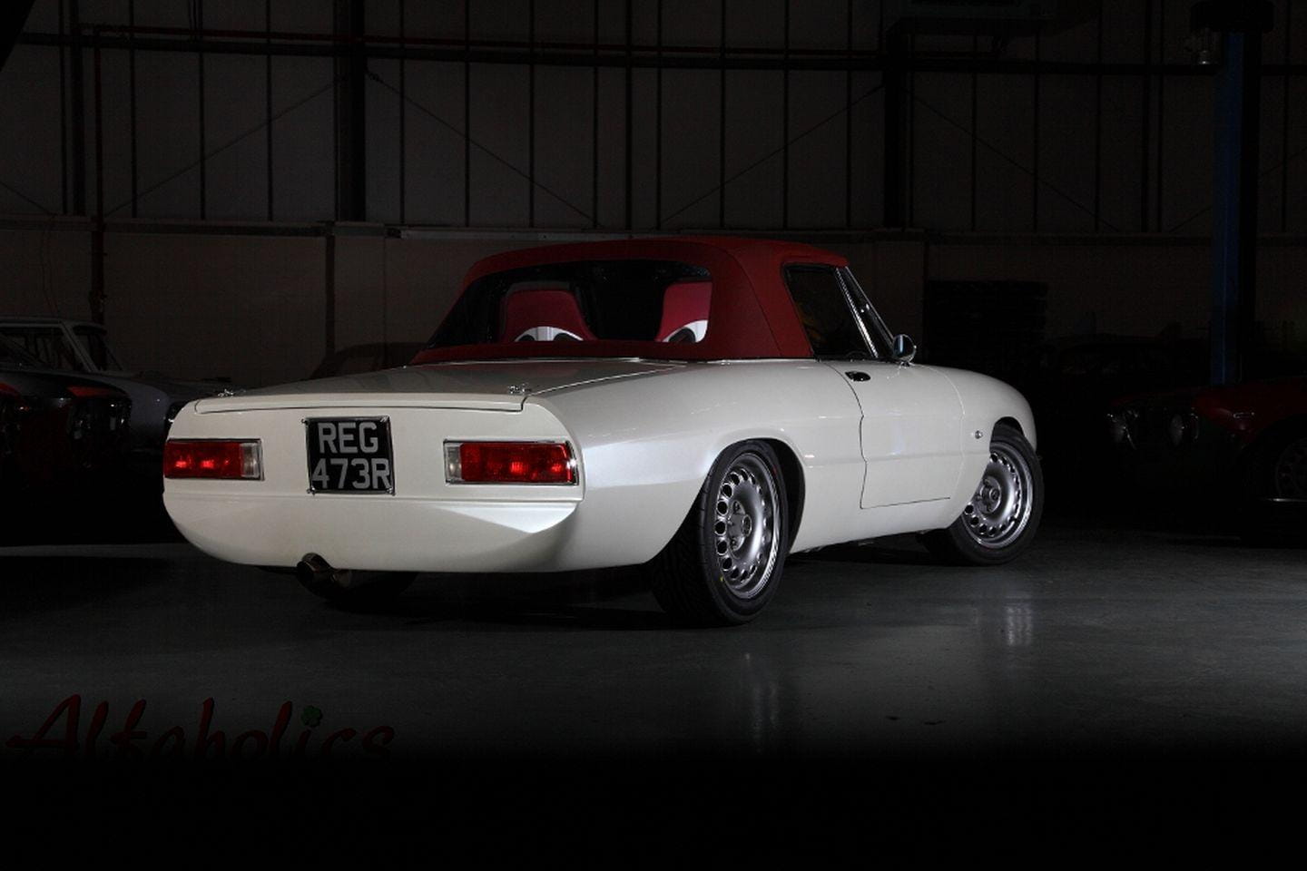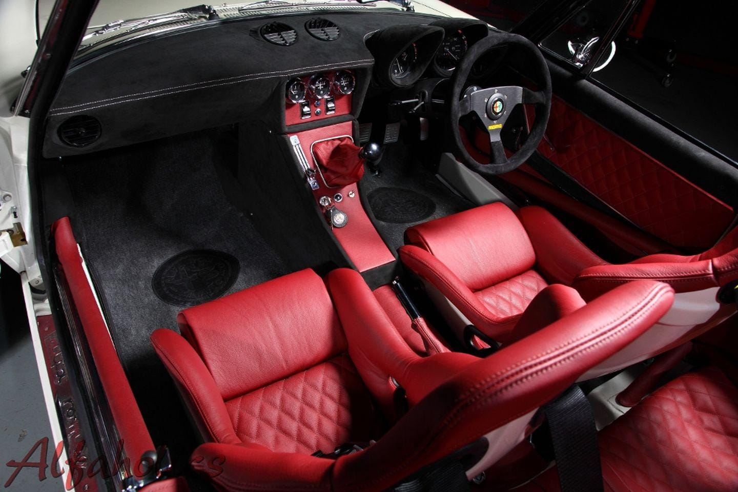 Varias piezas de la carrocería fueron creadas desde cero, como la clásica calandra del biscione, mecanizada en aluminio aeroespacial a partir de archivos CAD en 3D. Se ha suprimido el paragolpes trasero del coche y se le han instalado las mismas llantas de aleación ultraligera y 17 pulgadas del Alfaholics GTA-R 290. Los faros están recubiertos con una cubierta de plástico, uno de los detalles más cruciales de cualquier restauración de los Alfa Romeo Spider. El interior se ha construido prácticamente desde cero.