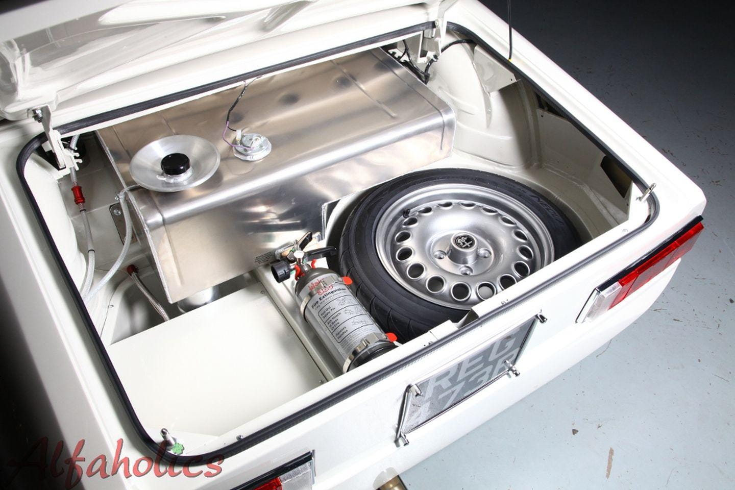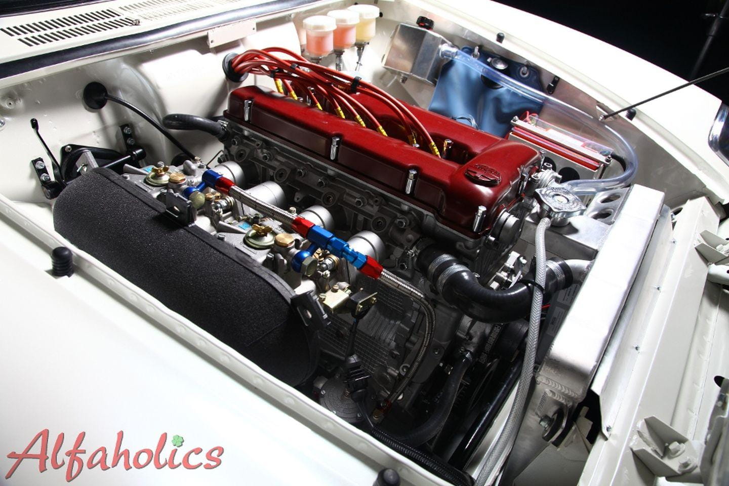 La suspensión está creada con el circuito en mente, tiene amortiguadores de aluminio y es propietaria de Alfaholics, así como el equipo de frenado, con discos ventilados delanteros abrazados por pinzas de seis pistones. Es una máquina de rendimiento muy serio, movida por un motor atmosférico de cuatro cilindros. El motor Twin Spark – presumiblemente un 2,0 litros procedente de un Alfa Romeo 75 – desarrolla nada menos que 216 CV entre las 6.800 rpm y las 7.300 rpm, siempre funcionando con gasolina de 98 octanos.