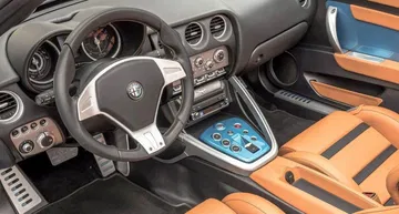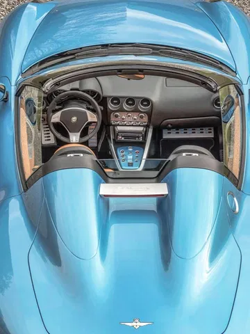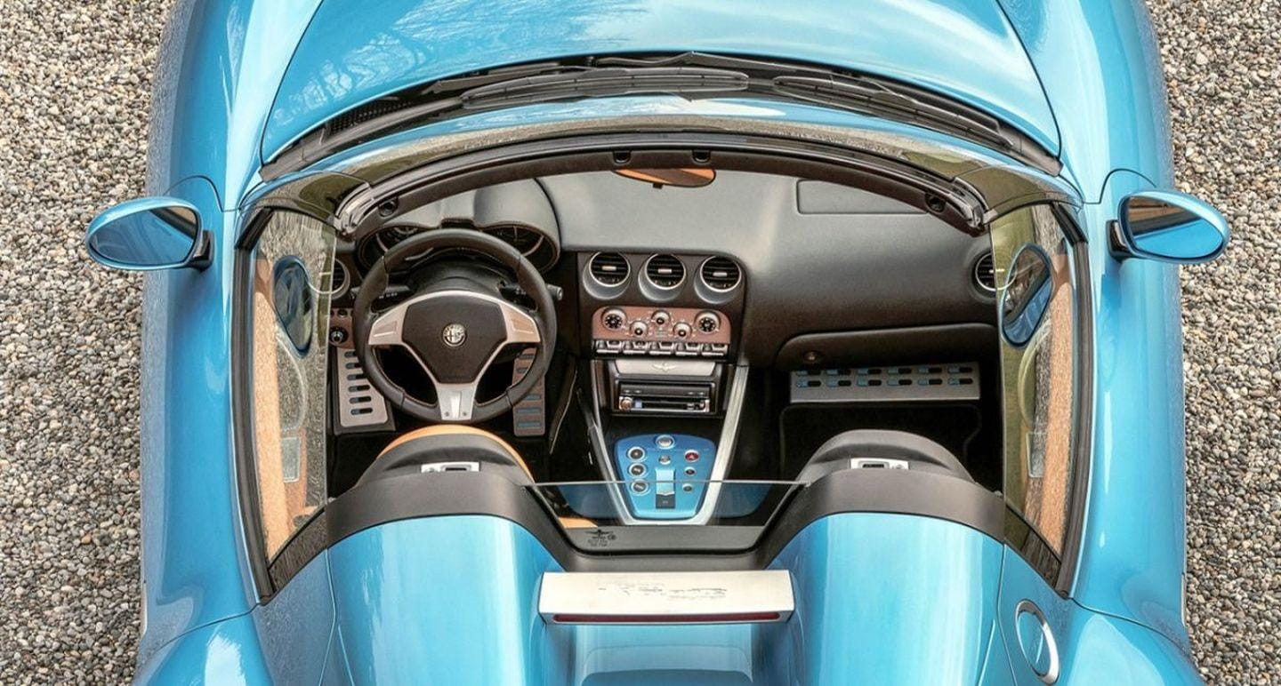 Este hardtop sólo pesa 3,5 kilogramos, y se almacena perfectamente en el maletero del coche. El vehículo ha sido pintado en un elegante color azul claro – Blu Ceruleo – y estéticamente es muy similar al Disco Volante Coupe. Sí cambia la zaga, donde los escapes tienen una disposición más vertical y encontramos un agresivo difusor funcional. Las dos jorobas traseras tras el habitáculo biplaza también son otra novedad de esta versión. En el interior del coche, tapicería de cuero marrón claro e inserciones en el color de la carrocería.
