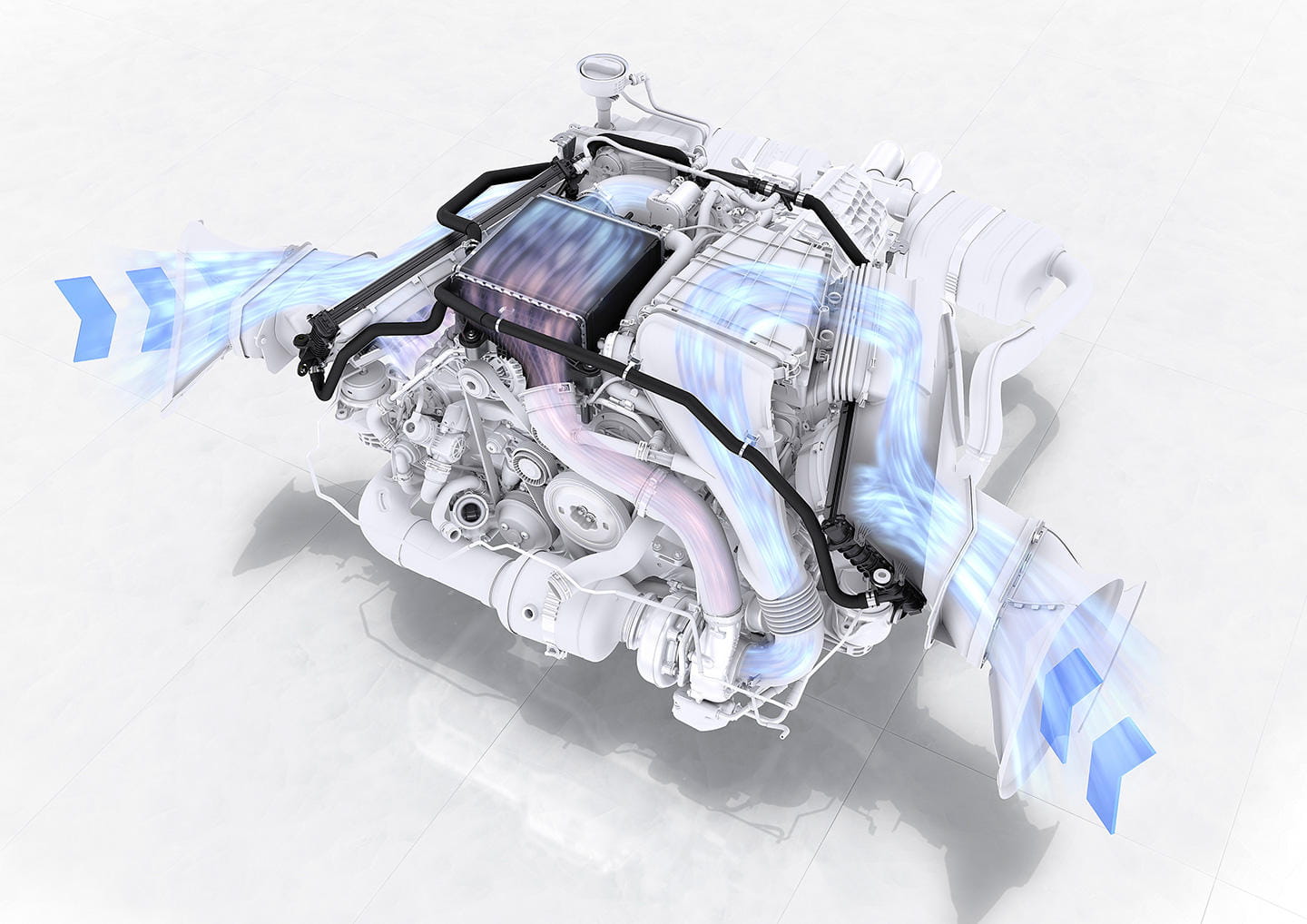 Porsche quería que las necesidades de refrigeración del motor no condicionasen en demasía el diseño exterior. Para ello han recurrido a unas branquias en las aletas traseras más anchas, que sirven para lograr un buen rendimiento térmico de los sistemas de refrigeración del motor, que además de la refrigeración líquida tradicional exigen nuevos sistemas de refrigeración para el turbo, como un intercooler de alta eficiencia. Entre otras soluciones, Porsche ha recurrido a una bomba en el circuito de refrigeración desconectable, y de flujo variable.