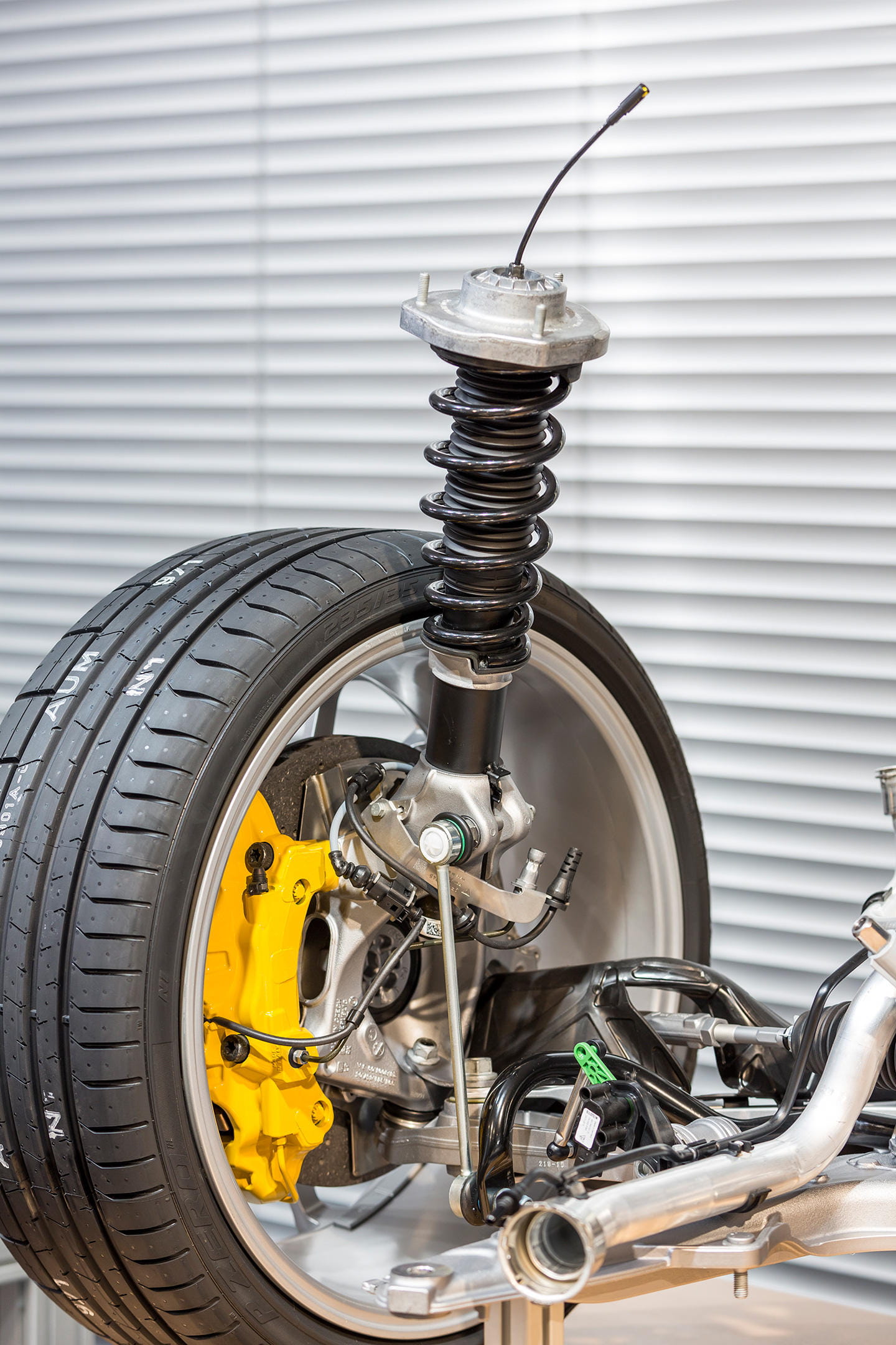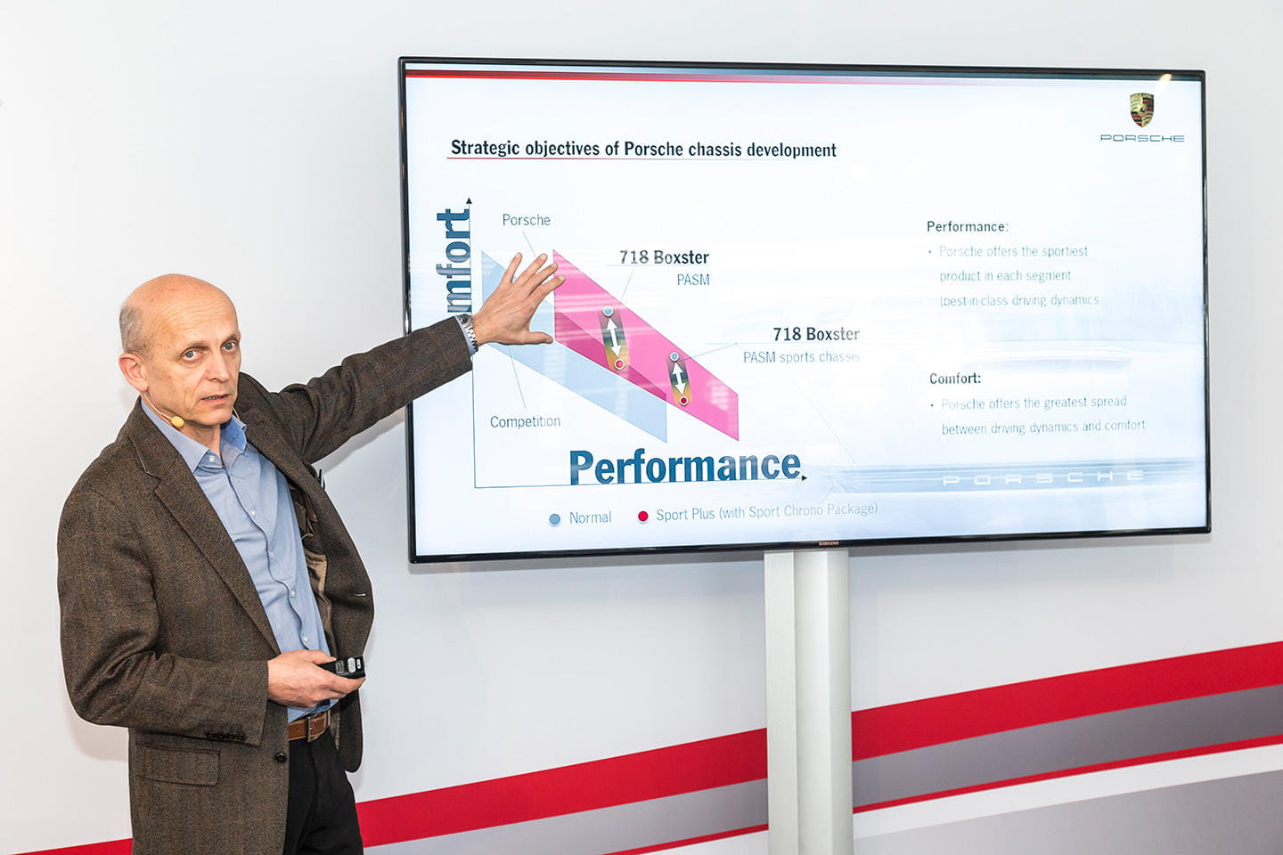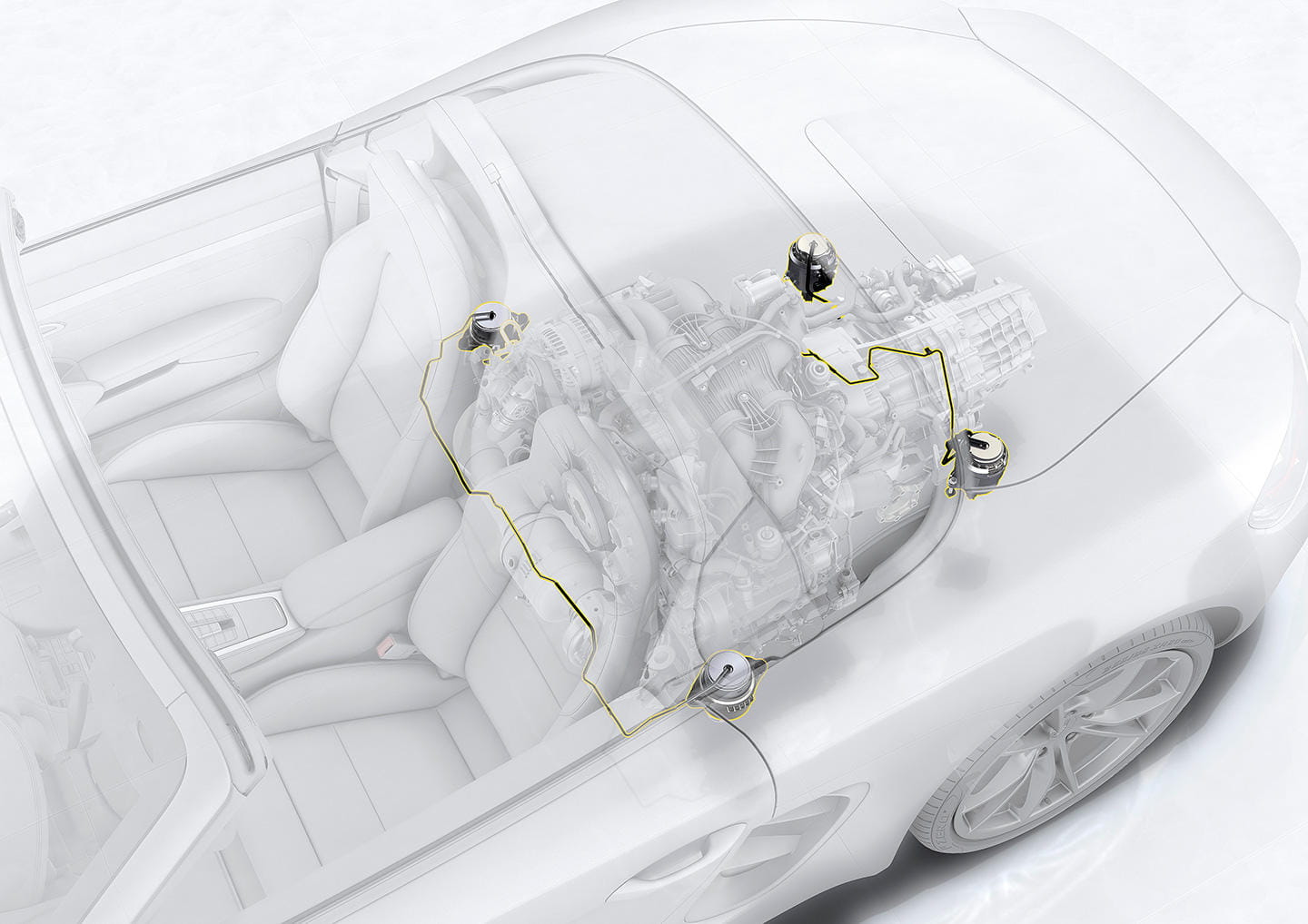 Porsche consideraba que el motor de cuatro cilindros empleado en el nuevo Porsche 718 Boxster podía no ser tan refinado como para sus estándares de confort, debido a que con dos cilindros menos, no puede gozar del equilibrio de su hermano mayor de seis. Esa es la razón que llevó a Porsche a hacer que su motor reposase sobre dos soportes hidráulicos, en vez de uno, con rigidez variable, para aumentar la amortiguación de las vibraciones a baja velocidad y al ralentí (que era donde podían resultar más molestas las vibraciones del motor) y endurecer la resistencia de los soportes a mayor velocidad para evitar que la transferencia de masas penalice su agilidad.