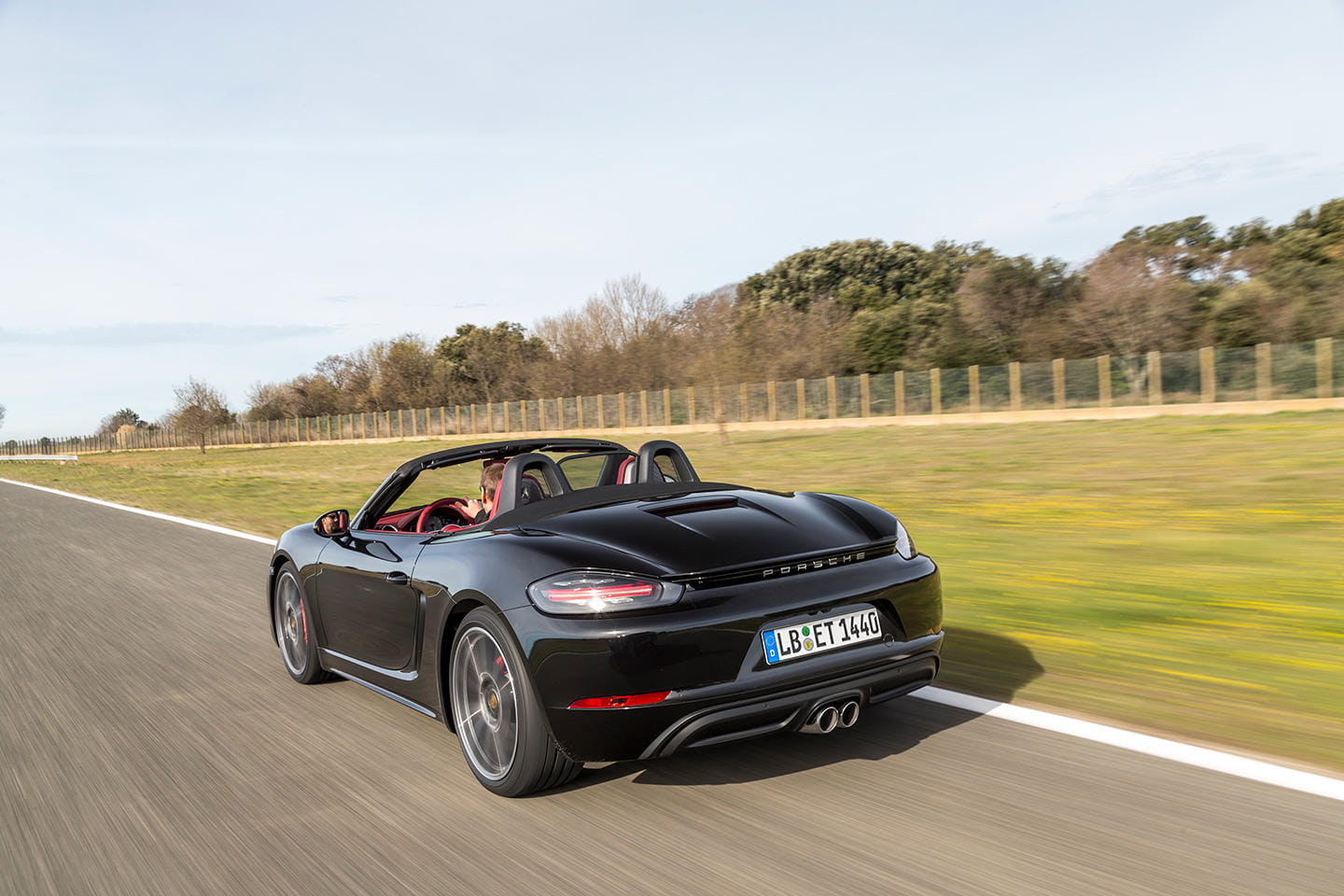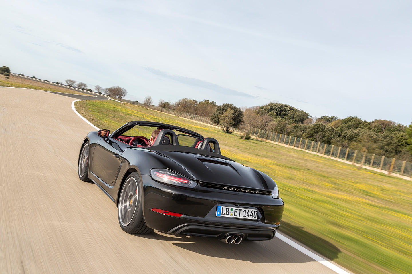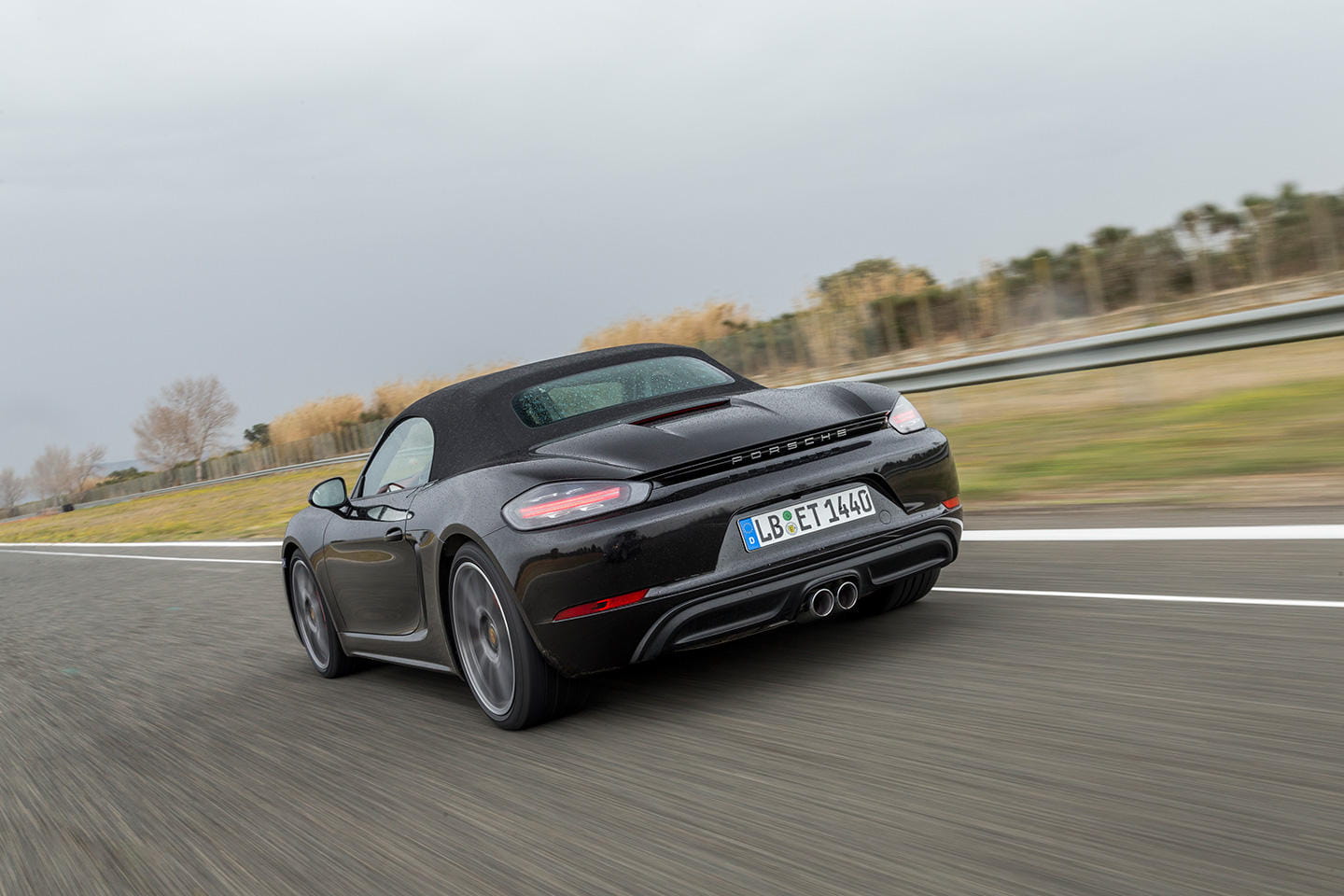 La gama Boxster cuenta de momento con tres sistemas de escape diferentes, empezando por uno con salida trapezoidal central para el Porsche 718 Boxster, a secas. El sistema de escape empleado por el Boxster S goza de doble salida redonda central, es aún más contundente, y aún podemos mejorarlo con un sistema de escape opcional deportivo que incluye un sistema de válvulas que amplifica aún más el sonido. Otra de las características de este escape está en la facilidad con que genera petardeos, especialmente en reducciones, lo cual a mi juicio resta autenticidad y adultera el sonido natural de admisión de este motor, pero que en cualquier caso hará las delicias de los amantes de ese sonido.