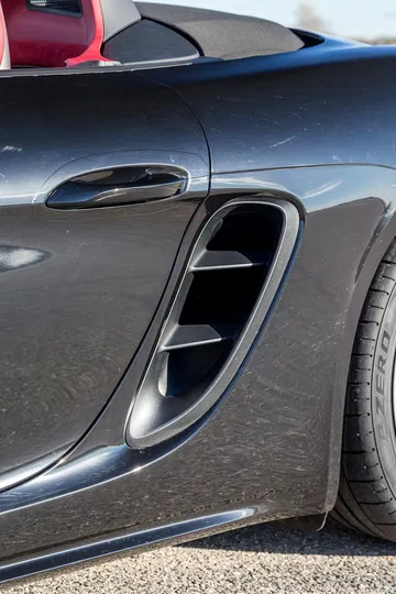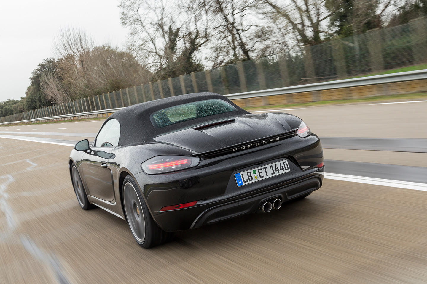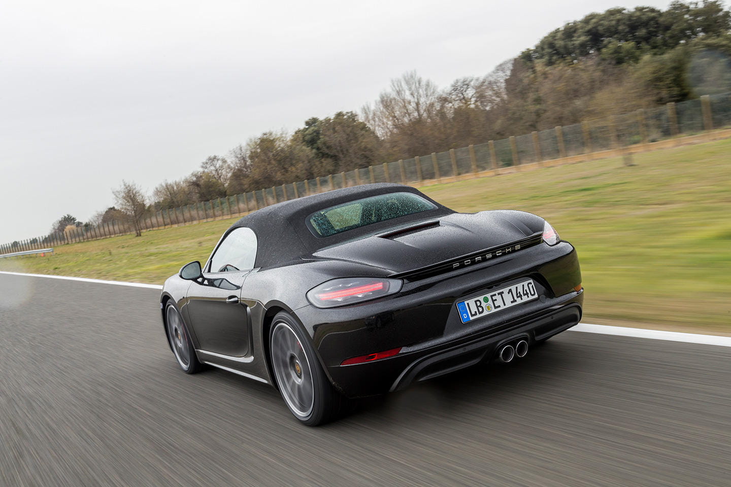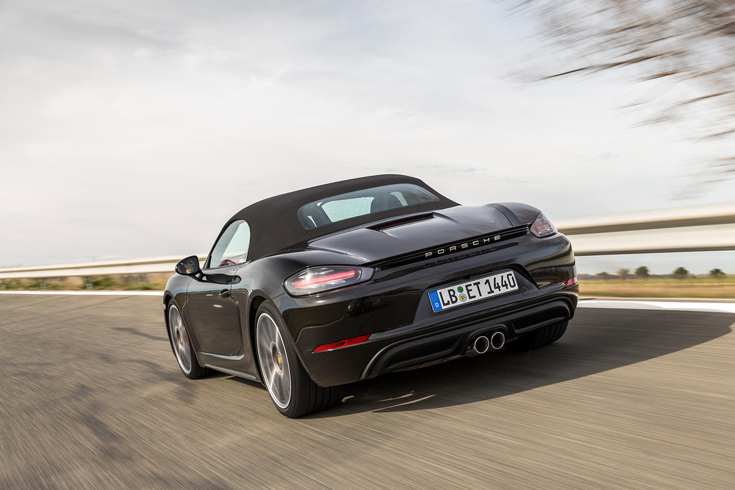 La gama Boxster cuenta de momento con tres sistemas de escape diferentes, empezando por uno con salida trapezoidal central para el Porsche 718 Boxster, a secas. El sistema de escape empleado por el Boxster S goza de doble salida redonda central, es aún más contundente, y aún podemos mejorarlo con un sistema de escape opcional deportivo que incluye un sistema de válvulas que amplifica aún más el sonido. Otra de las características de este escape está en la facilidad con que genera petardeos, especialmente en reducciones, lo cual a mi juicio resta autenticidad y adultera el sonido natural de admisión de este motor, pero que en cualquier caso hará las delicias de los amantes de ese sonido.