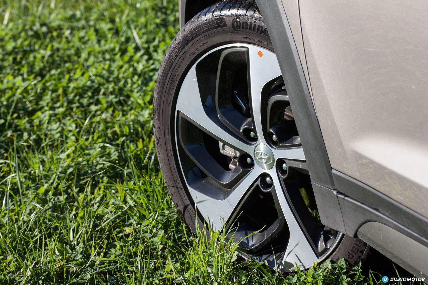 Pero sin duda, me conquistan sus pilotos LED, que dejan una clara firma lumínica tras de sí. Unos pasos de rueda enmarcados en plástico oscuro y unos paragolpes con detalles plateados confieren al coche el toque «todoterreno» que todo SUV necesita, aunque no vaya a salir del asfalto ni un solo momento. Los acabados inferiores tienen llantas de tamaños más moderados, con neumáticos de mayor perfil que priman más el confort. A título personal, no puedo más que felicitar a Hyundai por el trabajo estético de este nuevo Tucson.