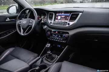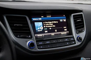 Sin resultar perfectos, se evidencia un gran paso adelante con respecto al Hyundai ix35. Plásticos de buena calidad recubren el salpicadero, con ajustes muy buenos allá donde pongamos nuestros dedos. Un plástico de tacto gomoso se combina en la parte superior del salpicadero con un plástico duro para la parte inferior, sin crujidos o fallos aparentes de calidad. Si bien la disposición de todos los controles es lógica, un pequeño pero que se le puede poner es una excesiva profusión de botonería. Se podrían haber agrupado algo más.