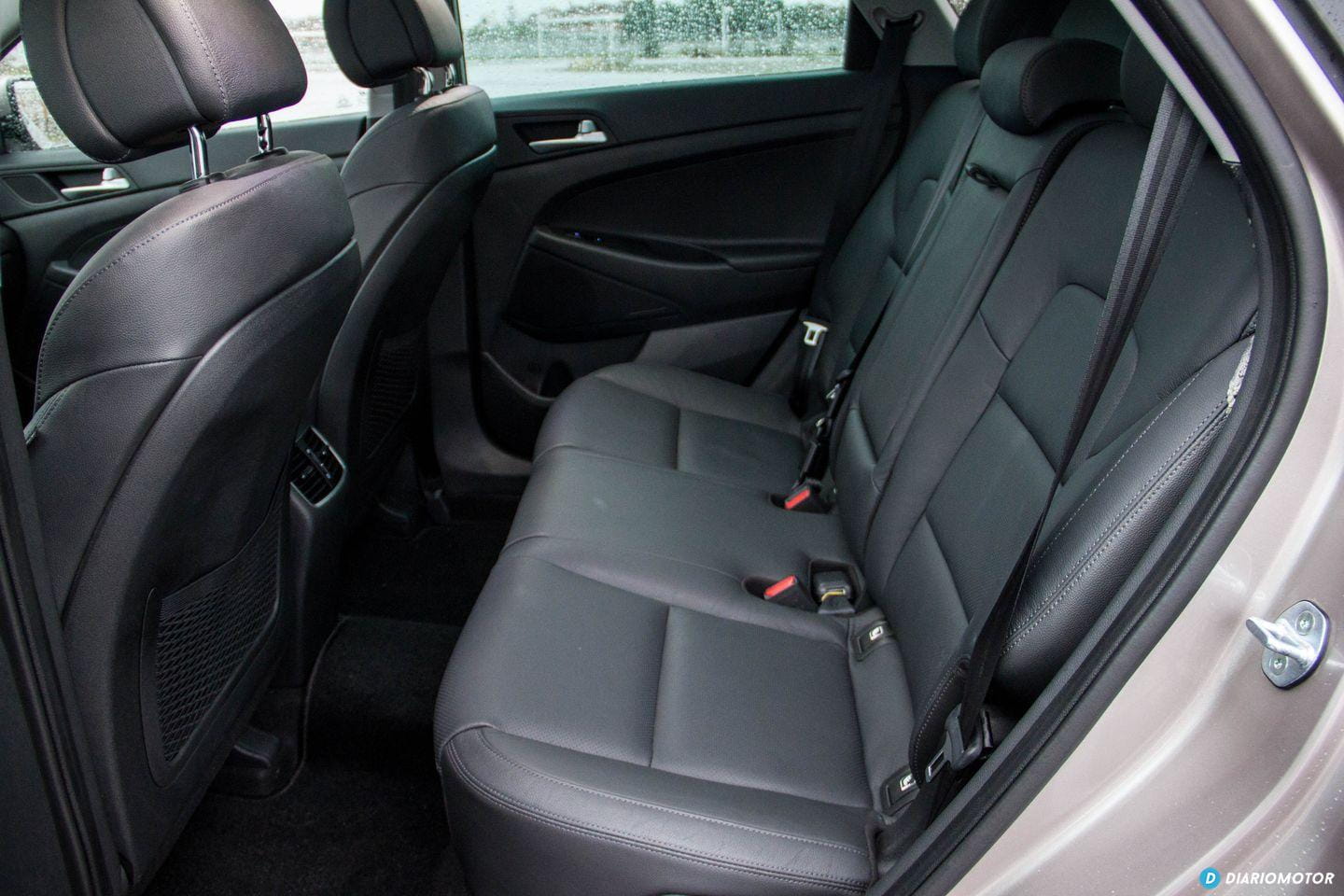 Sin embargo, es en el espacio donde el Tucson sobresale. Aún con un conductor alto delante, los pasajeros de la segunda fila disponen de un enorme espacio – en todas sus cotas: hombros, cabeza, rodillas – además de un fácil acceso a las plazas, con una apertura de puertas casi a 90 grados. Si bien el piso del coche no es plano, lo compensa con su amplitud. A nivel de hombros, tres adultos no muy corpulentos viajarán cómodamente, aunque para una experiencia de primera clase, cuatro es el número adecuado de pasajeros.