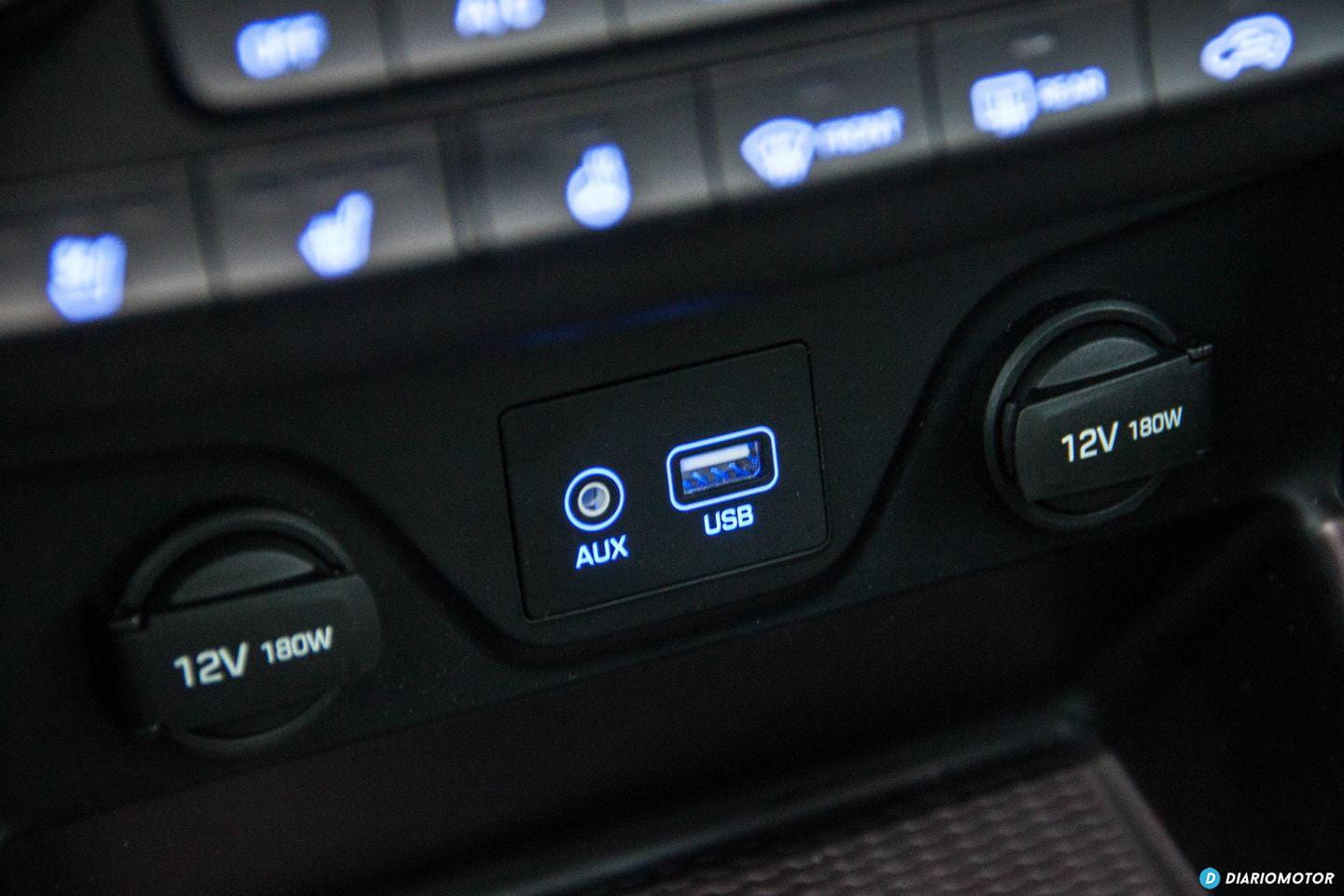 Igualmente, es un coche muy práctico, con multitud de huecos. Bajo la consola central hay un gran espacio, una cubeta con dos salidas de corriente y las entradas auxiliares para el equipo de sonido. Este gran espacio está acompañado de huecos para botellas grandes en las puertas, una guantera iluminada y refrigerada de dimensiones generosas. Entre los dos asientos – bajo un reposabrazos fijo – hay otro hueco, en el que también caben objetos de buen tamaño. No hay queja alguna en cuanto a practicidad en este Hyundai Tucson.