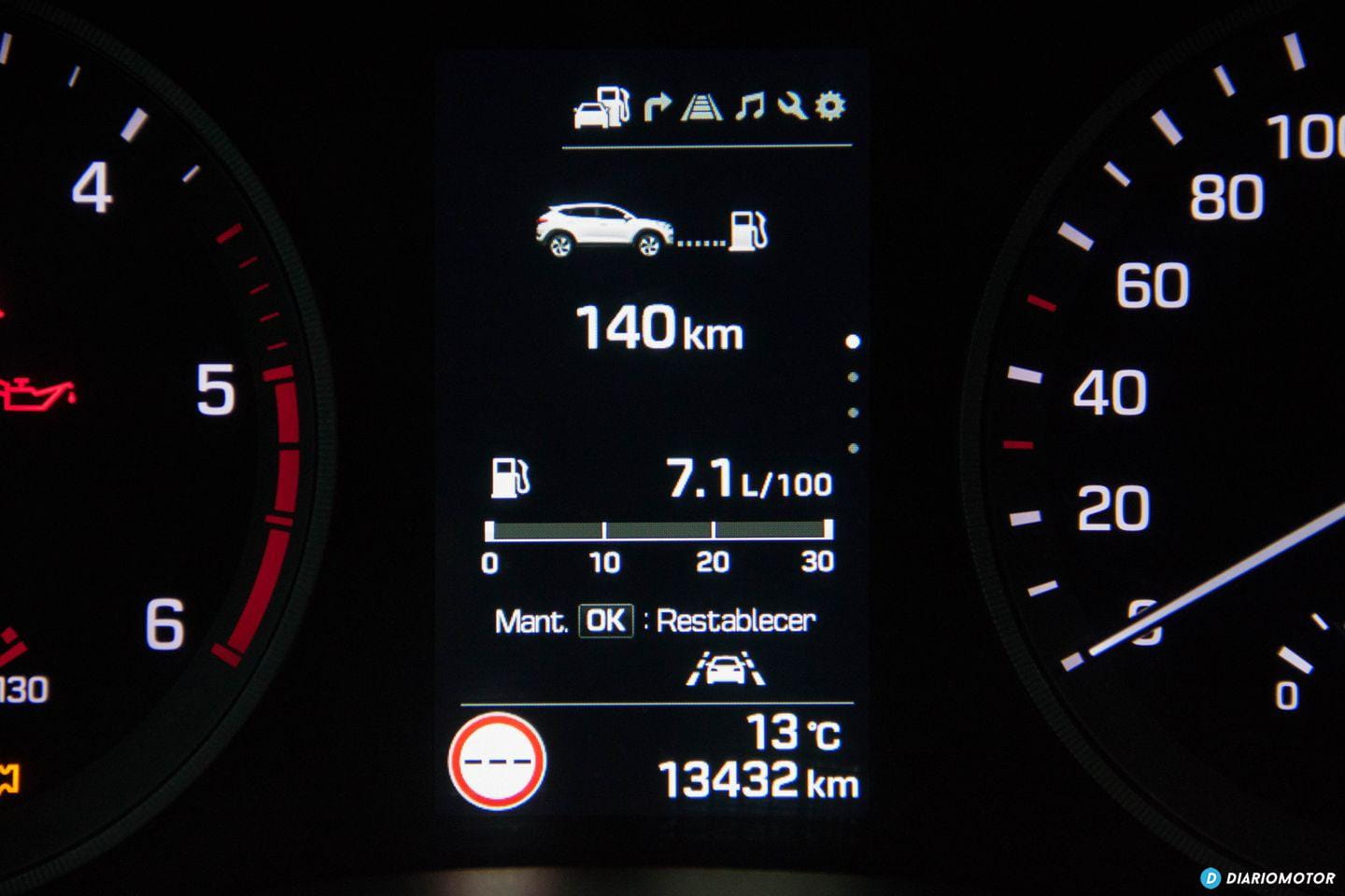 Lo cierto es que sus rivales consiguen potencias similares o superiores con menos cilindrada, y la cilindrada siempre juega a favor de las prestaciones y la respuesta del coche. Cito su condición veterana por detalles como la imposibilidad de tener un sistema Stop&Start, por ejemplo. Su homologación de 5,2 l/100 km de consumo medio y 139 g/km posiblemente sería menor con un motor como el 1.7 CRDi de 141 CV que ya equipan otros coches del grupo, y que ya ha irrumpido en la gama Tucson asociado a un cambio de doble embrague y siete relaciones.