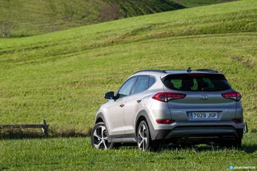 La conducción del Hyundai Tucson es cómoda, con un tarado de suspensiones que prima el confort, sin sacrificar un buen paso por curva, dentro de lo que podemos esperar de un SUV. No tiene miedo a las curvas, pero no le gusta ir a un ritmo alto, y las ayudas electrónicas cortarán de cuajo cualquier atisbo de desmán. Es un coche que disfruta en trayectos extraurbanos, donde arroja un consumo medio de 6,5 l/100 km a velocidades de autopista y que puede rondar los 5,5 l/100 km en rondas de circunvalación. No es el más ahorrador de su segmento.