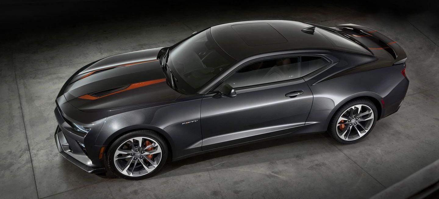 Todos los Chevrolet Camaro 50th Anniversary Edition estarán pintados en el color Nightfall Gray Metallic, que según Chevrolet, acentúa las líneas de los Camaro de sexta generación. El paquete 50th Anniversary Edition está sólo disponible con acabados 2SS o 2LT, tanto en motores 3.6 V6 como 6.2 V8, con hasta 455 CV de potencia disponible. En el acabado 2LT se asocia al RS Appearance Package, con un agresivo spoiler trasero y un paragolpes delantero de aspecto dinámico, con detalles cromados y en plástico satinado.