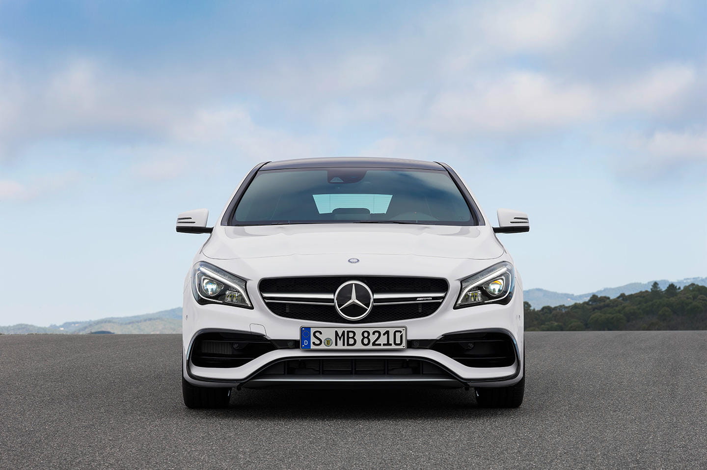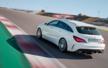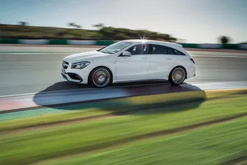Este modelo equipa de serie un cambio 7G-DCT (de doble embrague) y tracción a las cuatro ruedas, entregando 381 CV de potencia a 6.000 rpm y 475 Nm entre 2.250 y 5.000 rpm (ver prueba del Mercedes-AMG 45 CLA Shooting Brake).