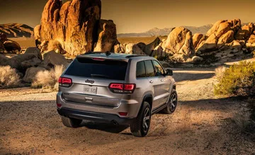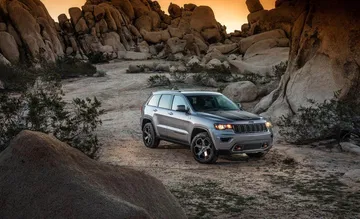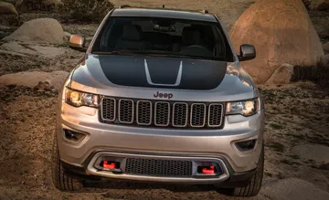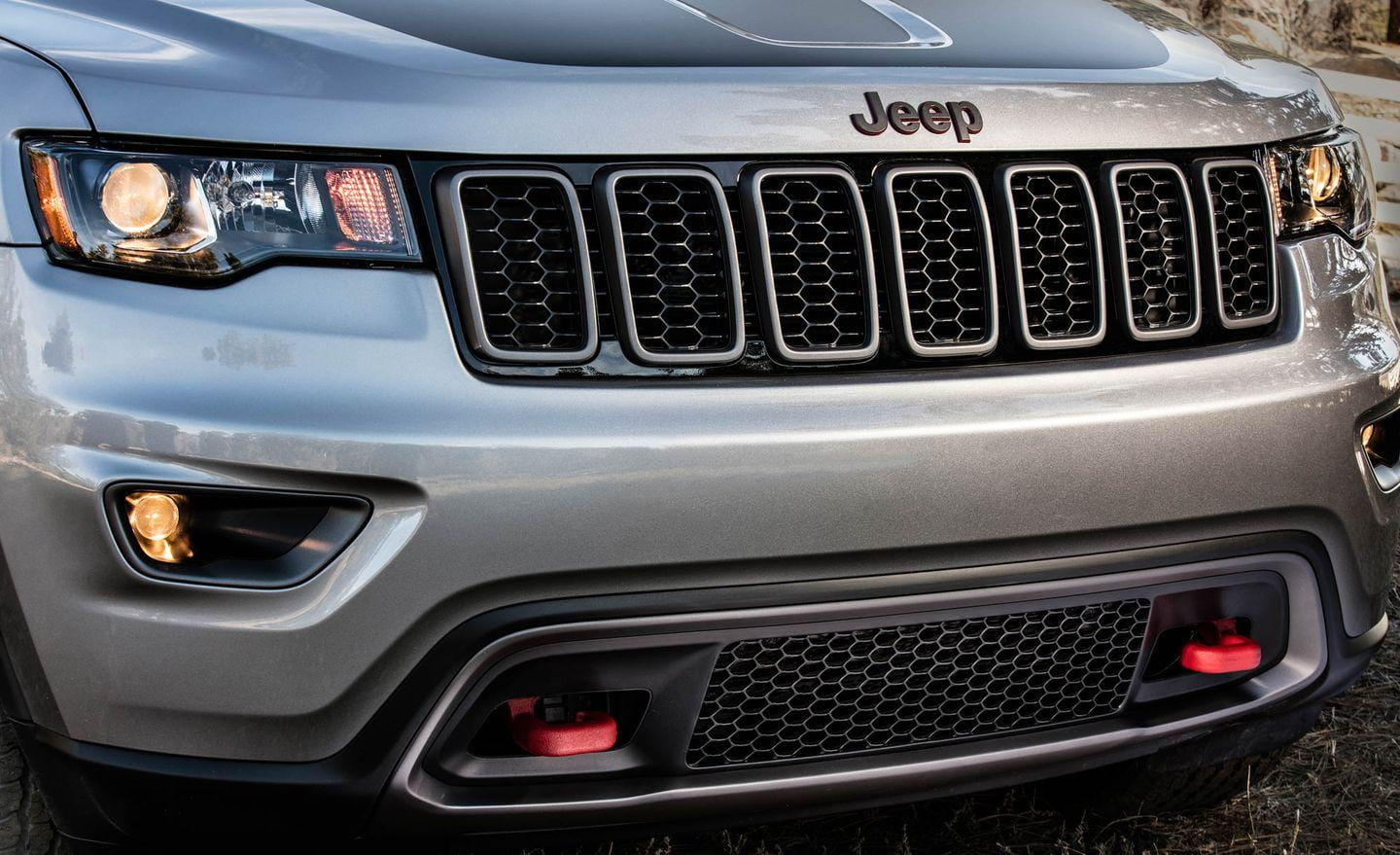De serie, el Jeep Grand Cherokee Trailhawk dispone de una defensa delantera con un panel central extraíble, diseñada para no ser dañada con un uso off-road muy exigente. Además, permite aumentar el ángulo de ataque hasta unos increíbles 36,1º – desde los ya excelentes 29,8º de serie. Su ángulo de salida es de 22,8º y su ángulo ventral es de 27,1º. Este SUV de amplias capacidades off-road se ofrece con el motor 3.6 V6 o el 5.7 V8 HEMI opcional, en ambos casos asociado a una caja de cambios automática de 8 relaciones.