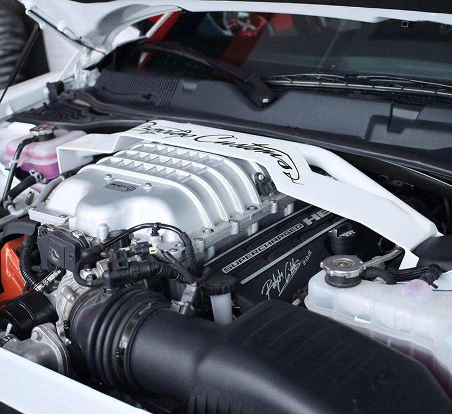 Un proyecto no exento de riesgos. ¿Por qué? Porque temo que sin los refuerzos necesarios, el chasis del Challenger se doblará como una rosquilla bajo el gigantesco par motor del motor 6.2 V8 HEMI Hellcat – este motor sobrealimentado desarrolla 707 CV y un par motor de 881 Nm a 4.000 rpm, más digno de un camión. Es capaz de superar los 320 km/h y a pesar de un peso en orden de marcha de 2.018 kilos, hace el 0 a 100 km/h en unos tres segundos. El Challenger Hellcat de DropTop Customs es posiblemente el secador de pelo más radical del mundo.