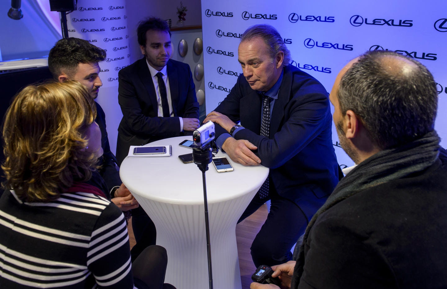 Cercano, sin tapujos y con ese desparpajo que se ha convertido tan en su marca personal se despide de nosotros. Por delante un rápido cóctel, algo de picar, una charla animada con algún compañero de profesión con el que nos topamos, con el equipo de Lexus y alguna que otra foto al Lexus GS 450h de la primera planta.