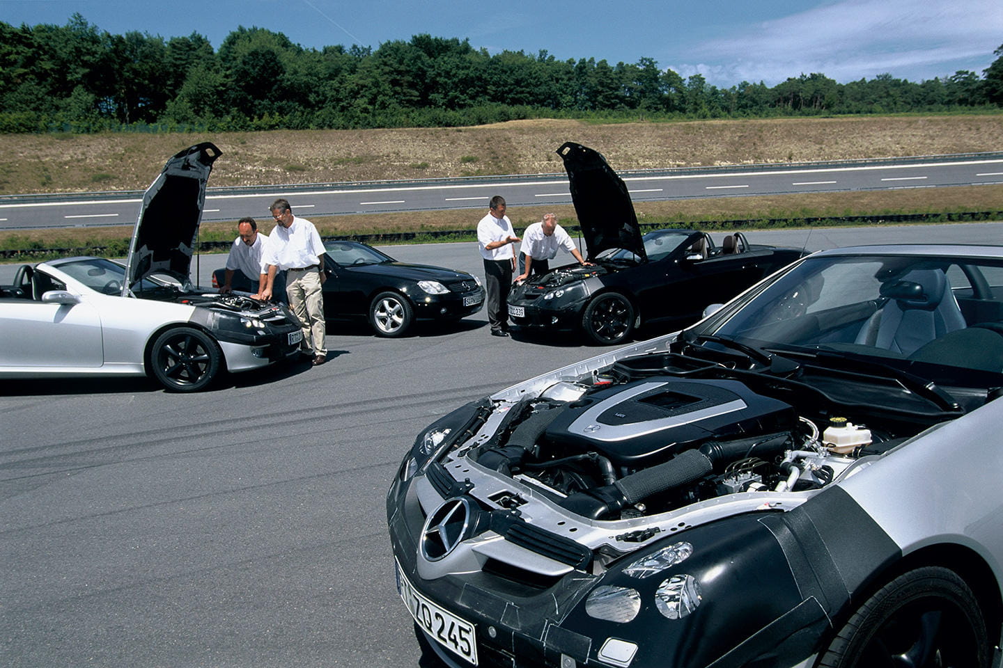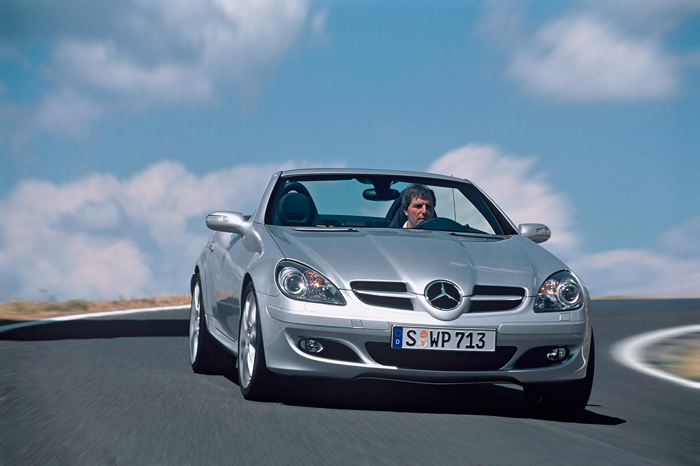 Y con el Mercedes SLK 55 AMG, un nuevo hito, el de lanzar un roadster de dimensiones compactas y motor V8, que por aquellas alcanzaba 360 CV de potencia.