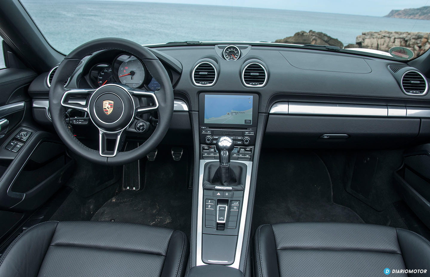 El cielo está encapotado, pero aún así descapotamos para disfrutar de esta prueba del Porsche 718 Boxster, como debería disfrutarse, de este roadster. Me ajusto el asiento, el cinturón, la columna de la dirección, y mientras mi mano derecha reposa en el pomo del selector del cambio, mi mano izquierda se dirige directamente a encender el motor, reminiscencia de aquellas famosas salidas de Le Mans, que Porsche aún sigue conservando como recuerdo de la épica de sus victorias en competición.