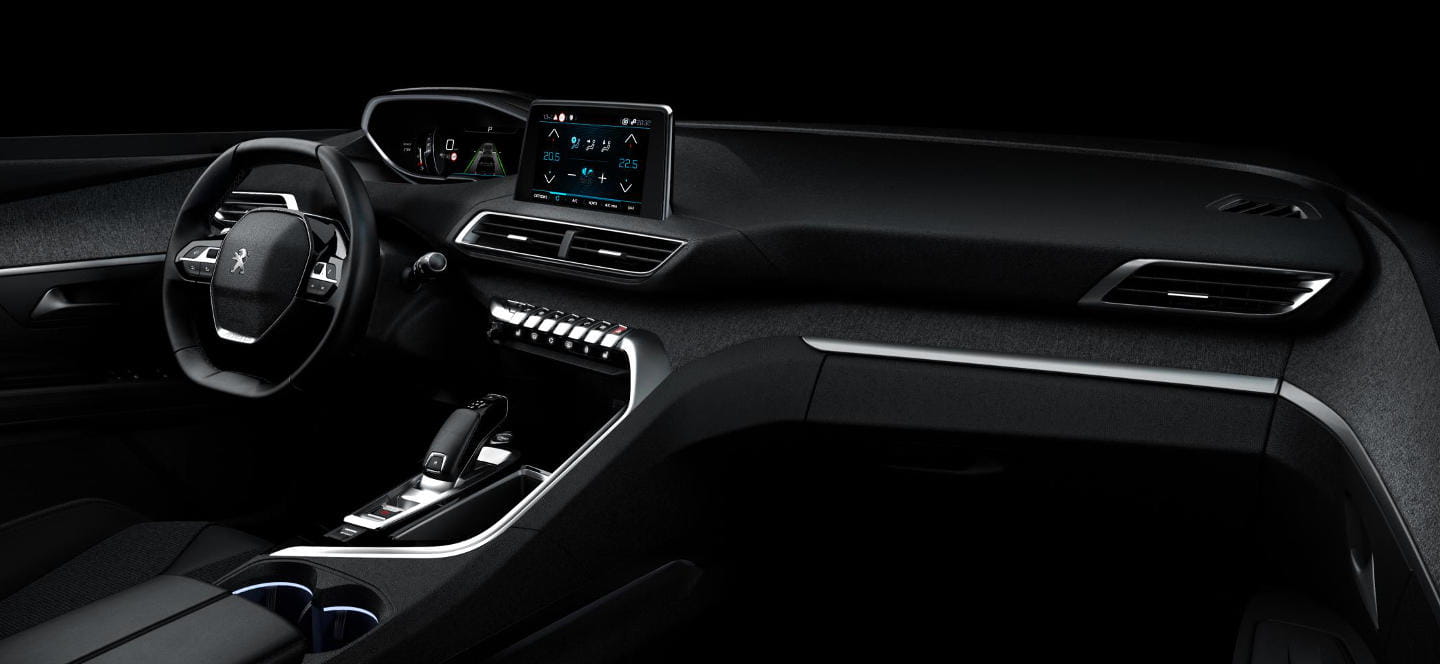 Este nuevo I-Cockpit se presenta con una instrumentación digital apoyada por una pantalla de 12.3 pulgadas. Irremediablemente debemos mencionar a Audi y Volkswagen, quienes emplean ya una solución semejante (incluso del mismo tamaño) en su instrumentación. Al igual que la pantalla empleada por los alemanes es personalizable.