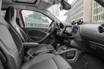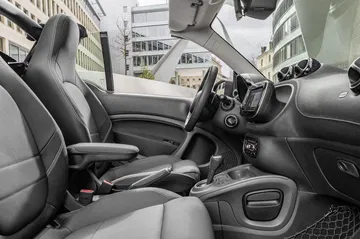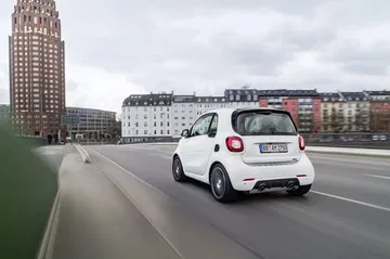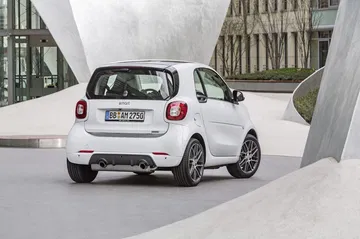 Los neumáticos traseros crecen hasta la medida 205/40 R17, montados sobre unas nuevas llantas deportivas de 17 pulgadas, que sientan de maravilla al urbano alemán. Todos los smart BRABUS llevan de serie un kit estético deportivo – con nuevos paragolpes y un pequeño spoiler – y techo panorámico además del paquete Cool & Audio y la alerta de proximidad al vehículo delantero. Si quieres una mayor personalización y un smart BRABUS con todas las de la ley, estás casi obligado a elegir el acabado BRABUS Xclusive.