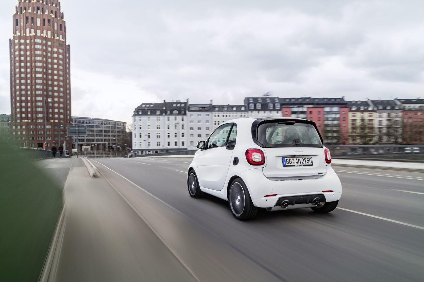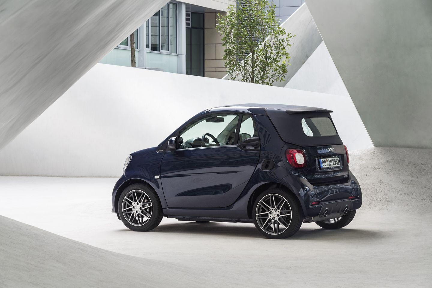 Todos los smart BRABUS llevan un nuevo sistema de escape deportivo, con dos colas centrales que deberían emitir un sonido interesante. El tren de rodaje ha sido modificado en varios frentes. En primer lugar, disfruta de una nueva dirección asistida: más directa, con asistencia variable en función de la velocidad y con más retroalimentación para el conductor. BRABUS Performance sports suspension es el nombre de una suspensión deportiva, hasta un 20% más firme y con nuevas barras estabilizadoras en el eje delantero.