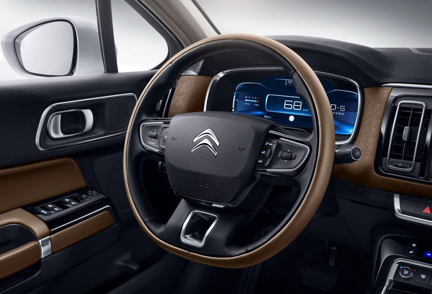 En el interior se aprecian unas calidades sobre el papel correctas y un diseño más marcado, más correcto. Por ejemplo, el salpicadero está recubierto de cuero perforado y la instrumentación es completamente digital. La consola central es escueta, con muy pocos botones, y está presidida por una gran pantalla táctil. En parte me recuerda al Volvo S90, quizá por la disposición y aspecto de su palanca de cambios. El volante está forrado en cuero bitono y tiene un aspecto diferenciado al de otros Citroën.