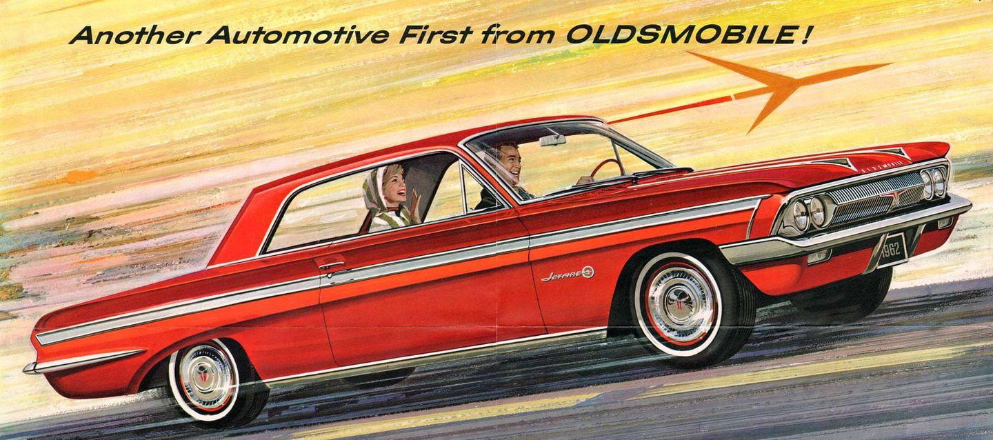 Llegó al mercado apenas semanas antes que otro motor sobrealimentado por turbo, también desarrollado por General Motors. Se llamaba Turbo Rocket – pocos nombres más molones se me ocurren para un motor – y fue desarrollado por Oldsmobile para los F-85, comenzando en los MY1962. Llegó apenas dos semanas más tarde a los concesionarios, aunque su desarrollo sucedió al mismo tiempo que el motor turbo de los Corvair. Era un motor muy diferente: para empezar, estaba basado en un V8 de 3,5 litros, refrigerado por agua.