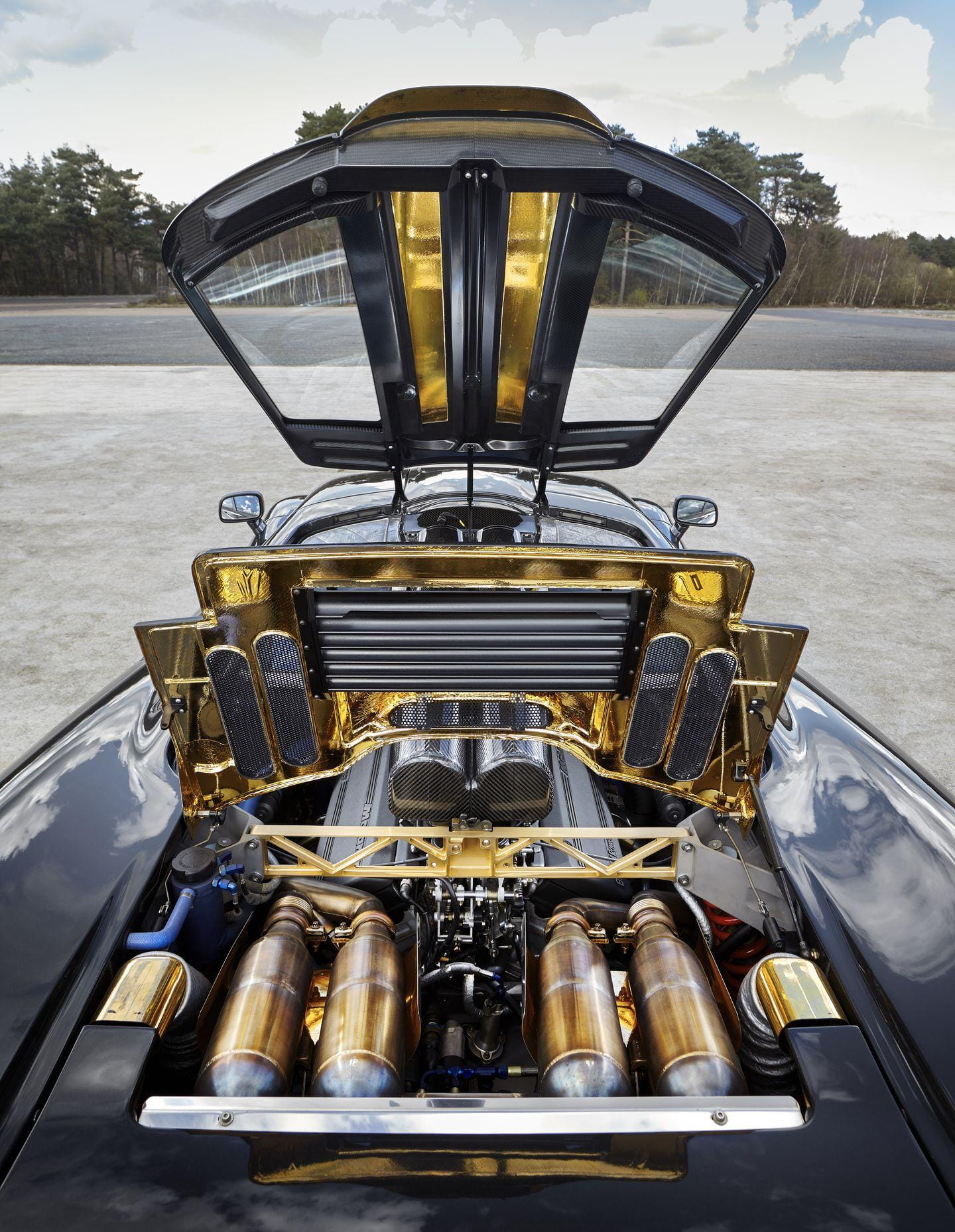 El coche está pintado en una tonalidad conocida como Carbon Black y las llantas de magnesio del coche también han sido oscurecidas. El resultado es un look amenazador, para el que es uno de los coches más bellos de la década sin duda alguna. El interior del coche es una maravilla. Todo ha sido tapizado en Alcantara de color negro, y el baquet del conductor está recubierto en una mezcla de cuero negro y rojo. Los asientos de los dos acompañantes son de Alcantara, y en todos ellos se deja ver parte de su estructura de fibra de carbono.