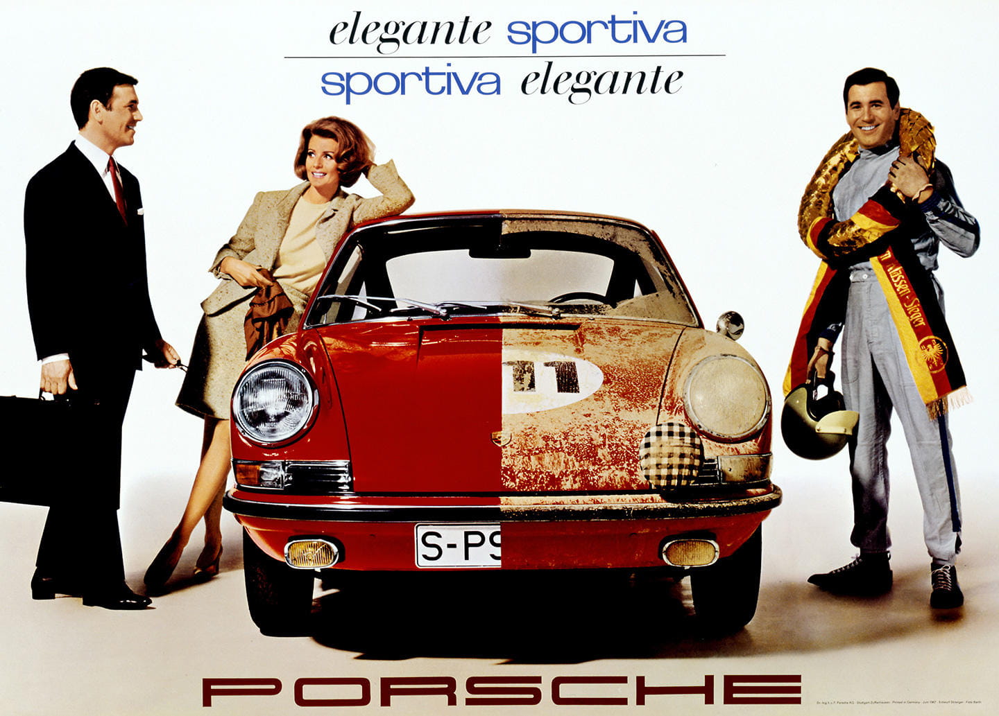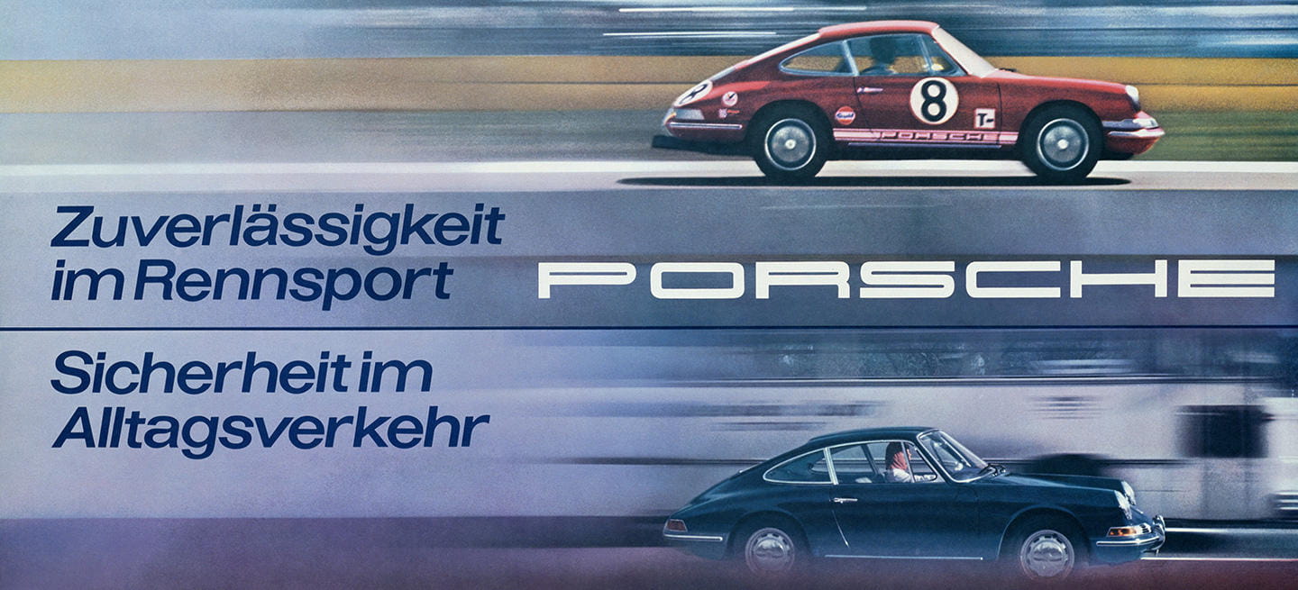 El cartel que ilustra esta entrada creemos que es muy revelador para entender el legado del Porsche 911. En alemán reza un eslogan que traducido al castellano equivaldría a «fiabilidad en las carreras, seguridad en la calle«.