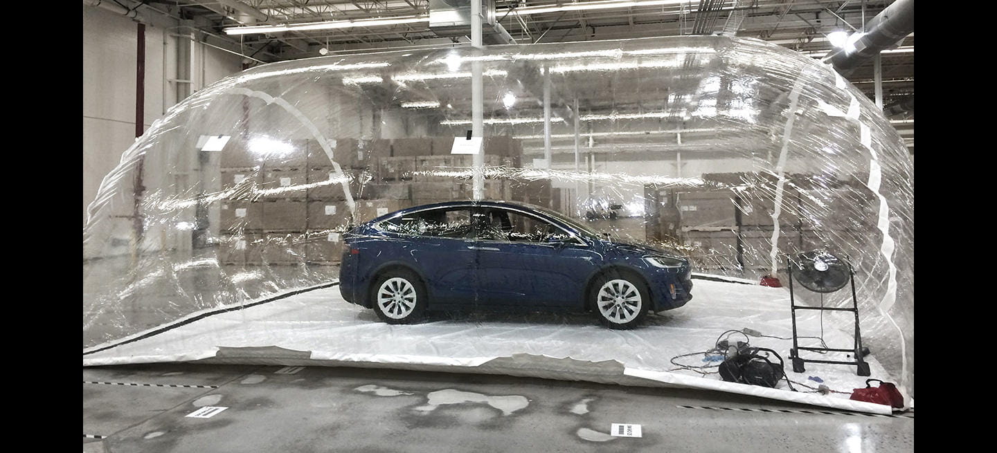 Tesla puso a prueba a un Tesla Model X, cubriéndolo en una burbuja en la que se introdujeron 1.000 µg/m3 de partículas sólidas PM 2.5, partículas finas que la Organización Mundial de la Salud considera un riesgo si se superan concentraciones medias superiores a los 10 µg/m3 en un año, o a los 25 µg/m3 en 24 horas. Es decir, el ambiente en esta burbuja era altamente contaminante, y peligroso para la salud.