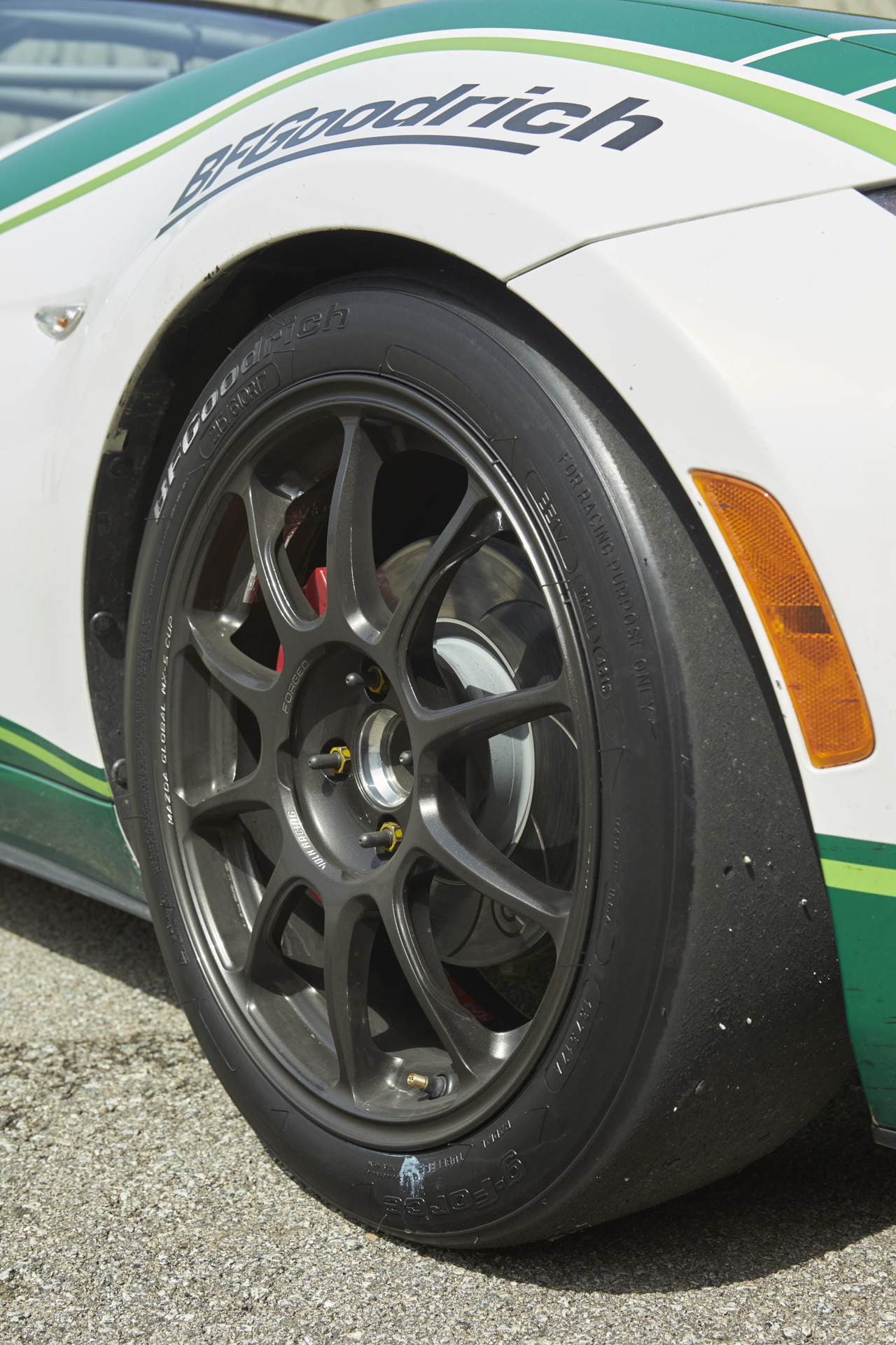 Todo el interior ha sido aligerado, hay una jaula antivuelco, buckets, instrumentación y volante de competición. Además hay una nueva suspensión regulable, sus frenos quedan al cargo de Brembo, aparecen unas nuevas llantas con slicks y se mejora la refigeración del conjunto mecánico.