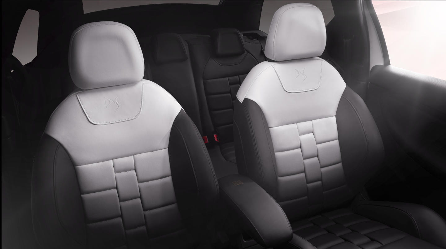 Bajo el amparo de Givenchy la “hermana pija” de Peugeot y Citroën nos propone una carrocería acabada en un tono blanco perlado al que se ha bautizado como Blanco Opalin. Esta pintura, cuya aplicación es una exclusiva mundial (según DS), llega contrastada por un tono “berenjena” bautizado como Whisper en el techo y las carcasas de los retrovisores.