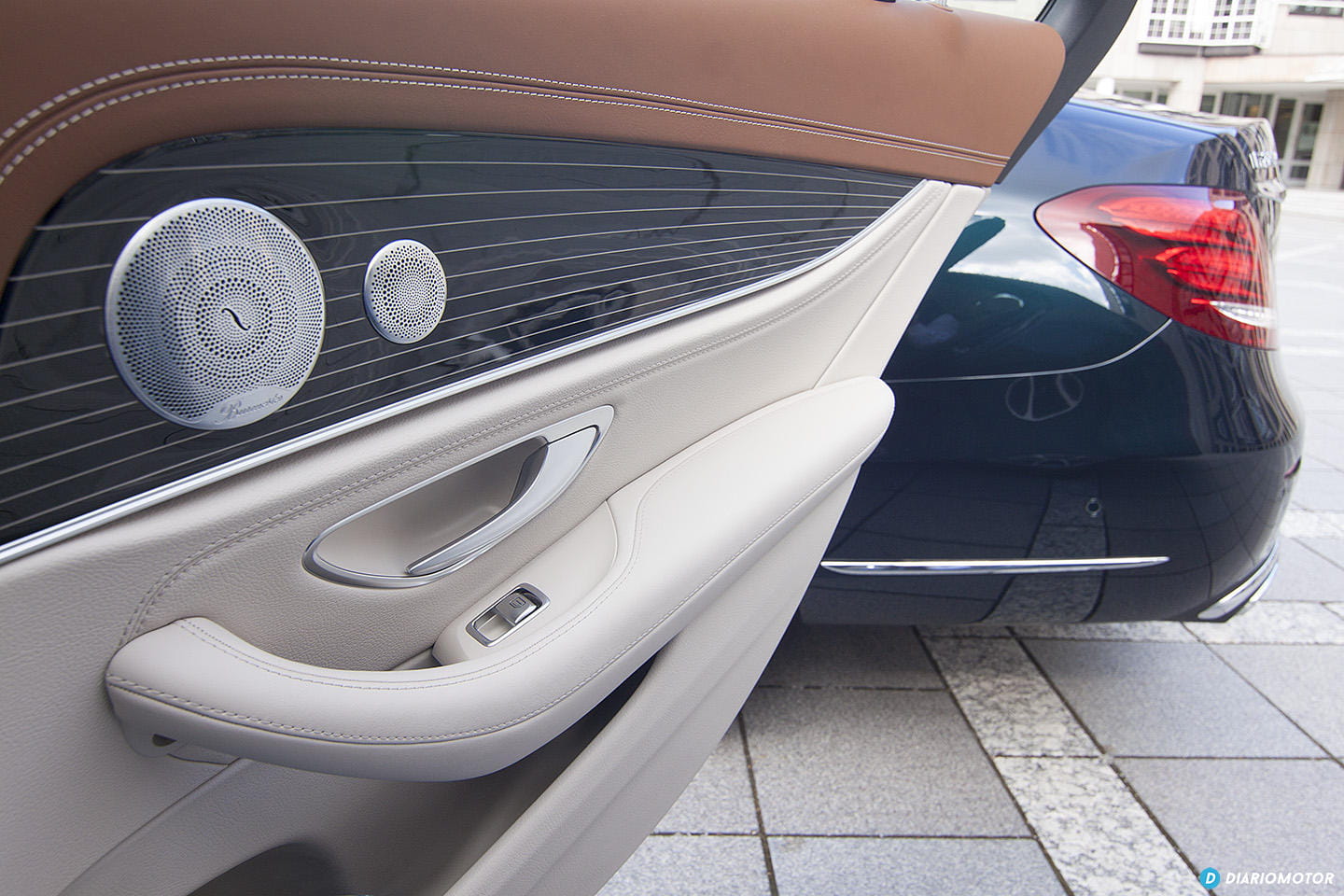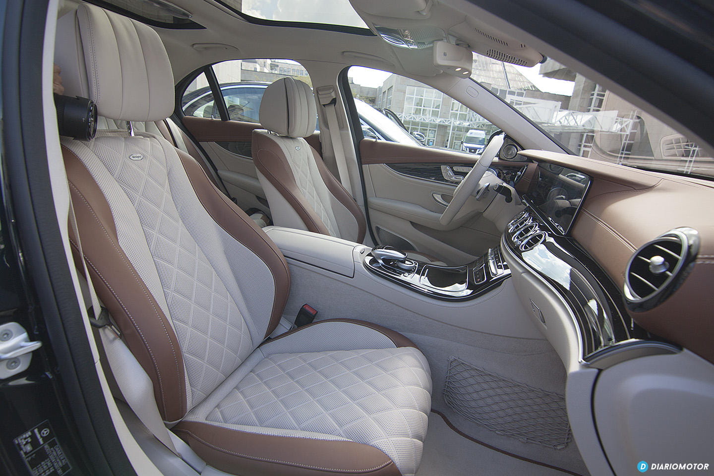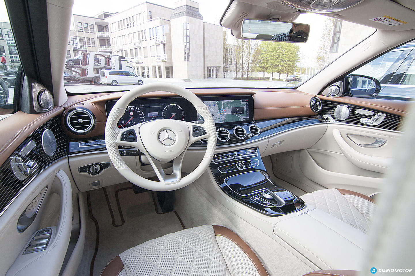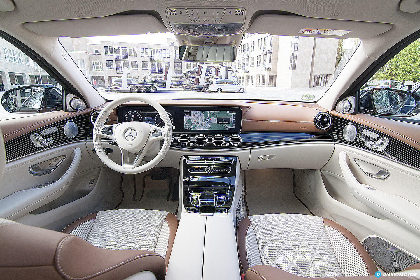 El Clase E es un coche muy recomendable para quien guste de berlinas grandes y pueda permitirse los casi 50.000 € de partida y no menos de otros 15.000 € en extras que el coche pide a gritos, como el paquete Premium plus, que incluye los faros LED Mutibeam, asientos calefactados, navegador, controles táctiles, cámara de aparcamiento 360º, sistema de sonido Burmester con altavoces hasta en el techo, memorias en los asientos y techo corredizo panorámico eléctrico (desde 9.038 €) o el paquete completo de asistencia a la conducción DRIVE PILOT (desde 3.194 €) más unas llantas a nuestro gusto que no bajarán de 2.000 € y alguna otra golosina que os aseguro que encontraremos en la lista de opcionales.